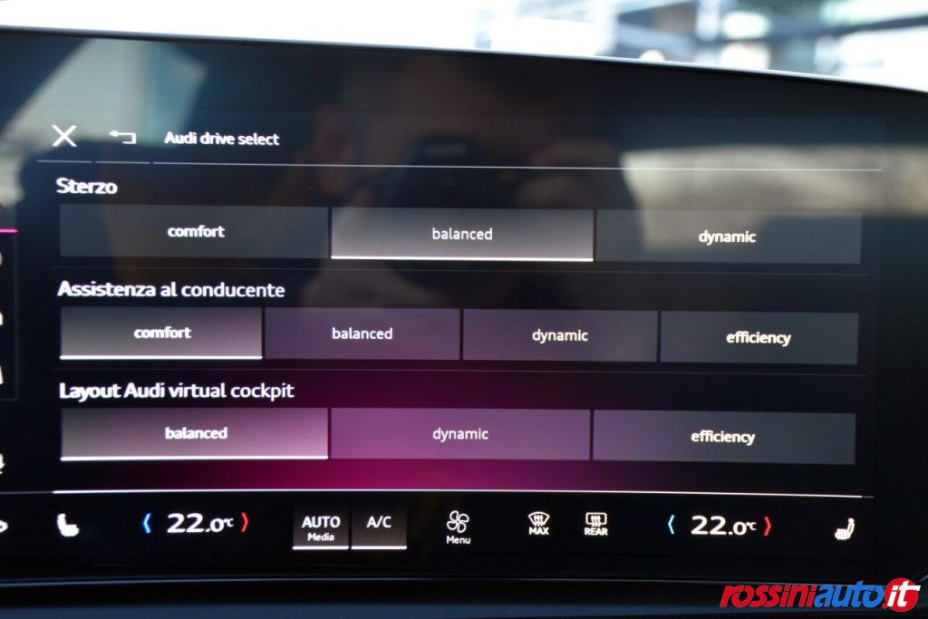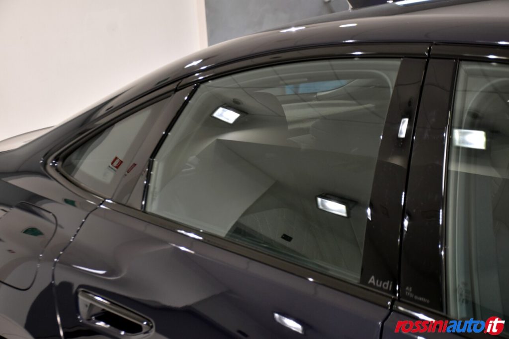 Al suo interno invece abbiamo il pacchetto S-Line con Microfibra Dinamica/Pelle Nera che impreziosisce l’automobile con dettagli specifici S-Line come il volante a 3 razze tronco, sottotetto nero antracite e pedaliera sportiva, abbiamo i sedili anteriori a regolazione elettrica, assetto sportivo S, impianto audio maggiorato Audi System e tanto altro ancora… (Vedi liste sotto).