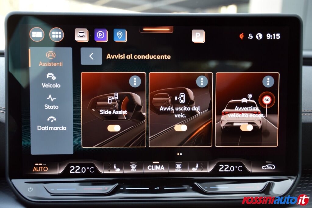 La Cupra Leon esce gia di serie ben equipaggiata ed oltre alla grande Radio Touch da 12,9” con Apple Car Play/Androir Wireless troviamo il Quadro strumenti digitale, ricarica Wireless per Smartphone,i fari Full LED anteriori e posteriori, sensori di parcheggio all’anteriore e al posteriore, ACC Adaptive Cruise Control, Lane Assist, climatriconi a tre zone e tantissimo altro ancora…