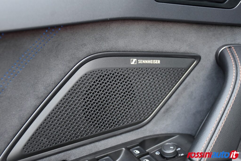 Al suo interno troviamo invece il Dynamic Design Pack che comprende sedili a guscio all’anteriore, Sedili in Dynamica misto Smil pelle, sedile del guidatore elettrico e sedili anteriori riscaldati, l’EDGE Pack che impreziosisce la vettura col Keyless Access, l’antifurto Volumetrico e l’utile retrocamera e l’Immersive Pack By Sennheiser con 11 casse audio e Subwoofer da 390W.