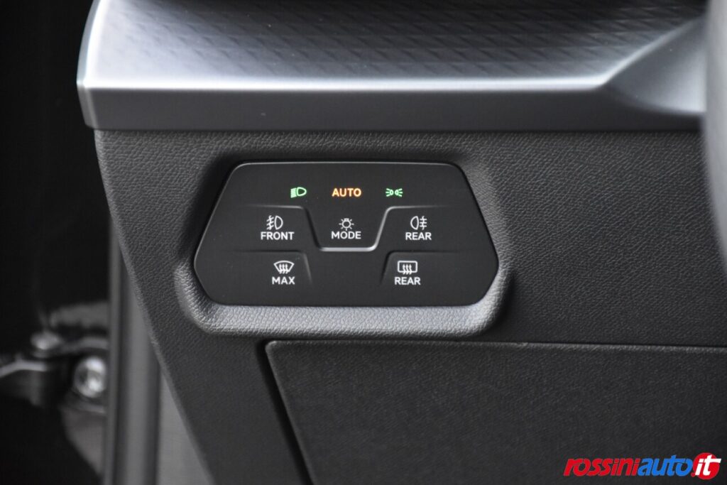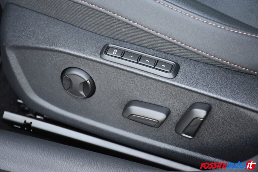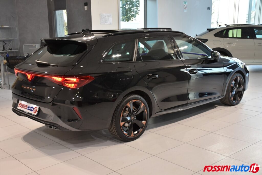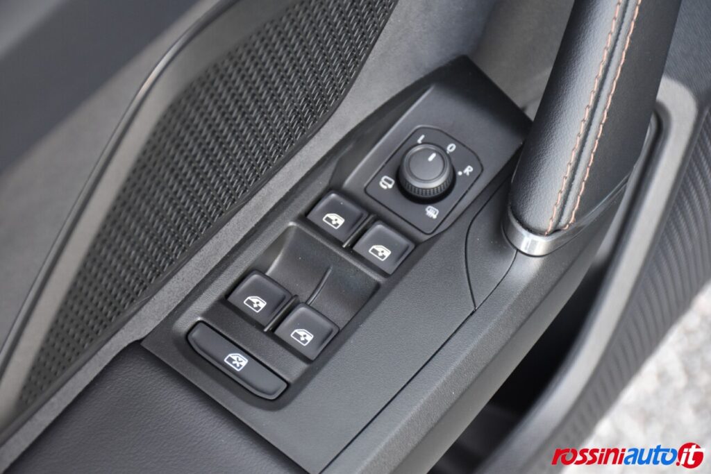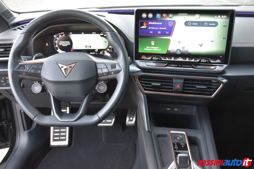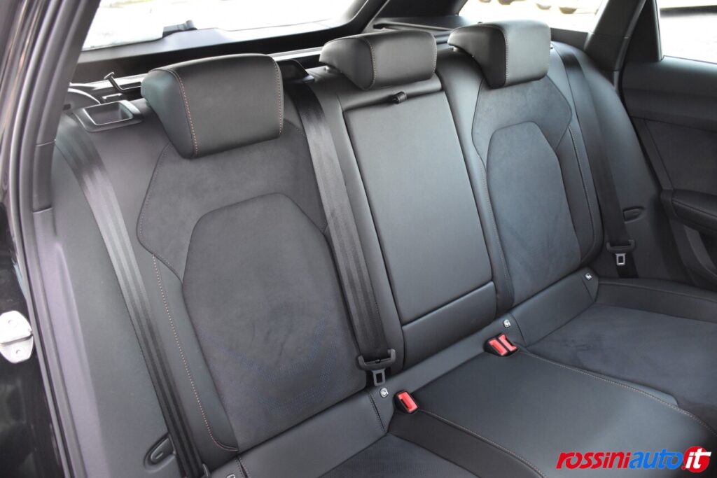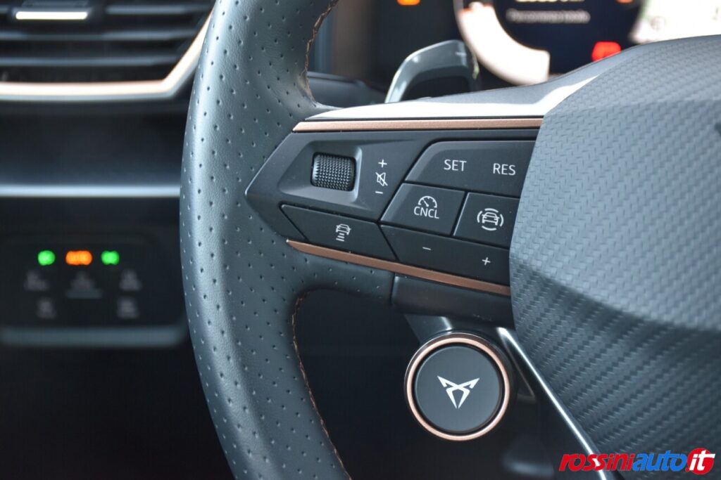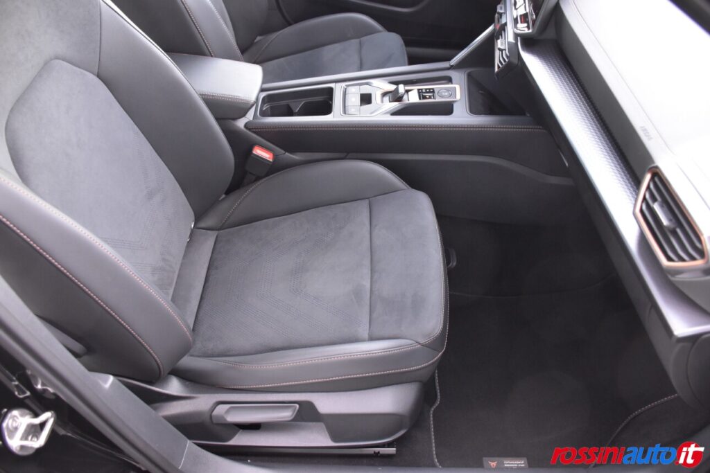 2 USB Tipo C anteriori e 2 posteriori, 7 airbag (2 frontali, 2 laterali, 2 tendina, 1 centrale), ABS (Sistema di frenata antibloccaggio), Alzacristalli elettrici anteriori e posteriori, Avvisatore acustico mancato allacciamento cintura di sicurezza, Battitacco portiere anteriori illuminato, Bocchette della ventilazione con dettagli in color rame, Bracciolo anteriore con portaoggetti integrato, Bracciolo posteriore, Cielo abitacolo nero, Climatronic tri-zona con sistema Air-care, Cornice finestrini in colore nero lucido, ACC Adaptive Cruise control, CUPRA Virtual Cockpit, DAB – Digital Audio Broadcasting, Doppio terminale di scarico visibile, Drive profile select, ESP (Controllo elettronico della stabilità), Fari fendinebbia LED con funzione cornering, Fari Full Led con indicatori di direzione dinamici, Freno di stazionamento elettrico, Front assist con sistema di frenata di emergenza e rilevamento pedoni e ciclisti, Full Link Wireless (funzione wireless disponibile con Apple CarPlay), Illuminazione ambientale a LED Smart Wraparound (cruscotto e portiere anteriori), Illuminazione Coast-to-coast con Welcome light (cerimonia di apertura e chiusura), Illuminazione interna a LED, Kessy Advanced (Sistema di avviamento senza chiave), Lane Assist (sistema di mantenimento della corsia), Limitatore di velocità, Logo CUPRA sulla griglia frontale e sul portellone posteriore, Paraurti e spoiler posteriore sportivi, Prese da 12 V anteriore e nel vano bagagli, Proiezione “CUPRA” sotto gli specchietti retrovisori esterni, Regolazione lombare sedile conducente, Sedili anteriori supersportivi Bucket in tessuto e similpelle con design CUPRA, Sedili posteriori abbattibili e ripiegabili 1/3 e 2/3, Sensori di parcheggio anteriori e posteriori, Sistema ancoraggio ISOFIX x2 (i-Size) + Top Tether x2 nei sedili posteriori, Sistema di controllo della pressione pneumatici, Sistema di rilevamento della stanchezza, Sistema E-Call (chiamata di emergenza), Sospensioni sportive CUPRA, Specchietti esterni grigio lucido riscaldati e richiudibili elettricamente, Sterzo progressivo, Tyre fit, Vetri posteriori oscurati, Volante multifunzione in pelle con design CUPRA e levette del cambio, XDS (Sistema differenziale elettronico).