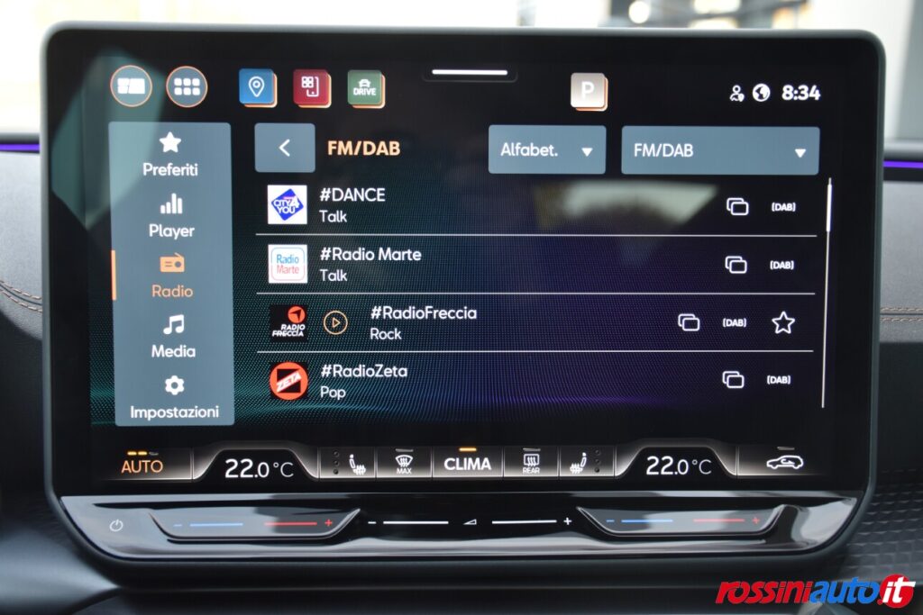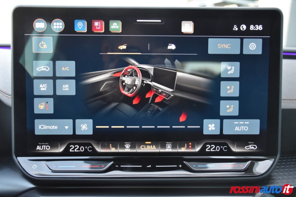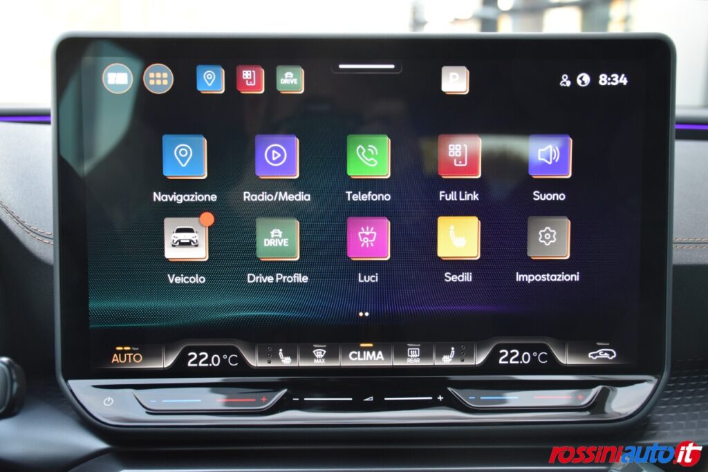 La Cupra Leon esce gia di serie ben equipaggiata ed oltre alla grande Radio Touch da 12,9” con Apple Car Play/Androir Wireless troviamo il Quadro strumenti digitale, ricarica Wireless per Smartphone,i fari Full LED anteriori e posteriori, sensori di parcheggio all’anteriore e al posteriore, ACC Adaptive Cruise Control, Lane Assist, climatriconi a tre zone e tantissimo altro ancora…