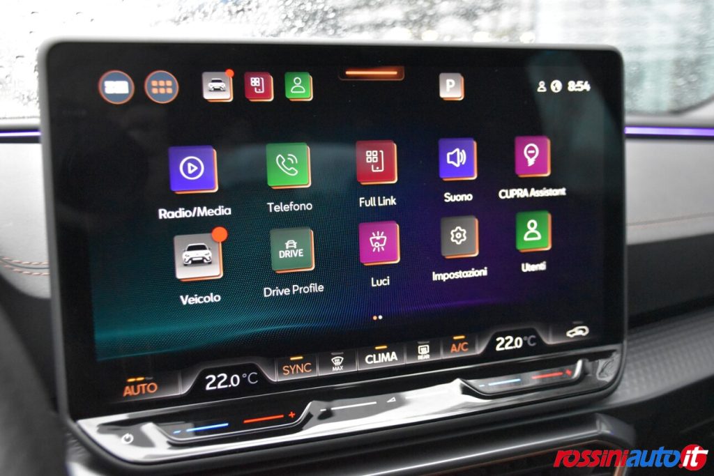 La Cupra Leon esce gia di serie ben equipaggiata ed oltre alla grande Radio Touch da 12,9” con Apple Car Play/Androir Wireless troviamo il Quadro strumenti digitale, ricarica Wireless per Smartphone,i fari Full LED anteriori e posteriori, sensori di parcheggio all’anteriore e al posteriore, ACC Adaptive Cruise Control, Lane Assist, climatriconi a tre zone e tantissimo altro ancora…