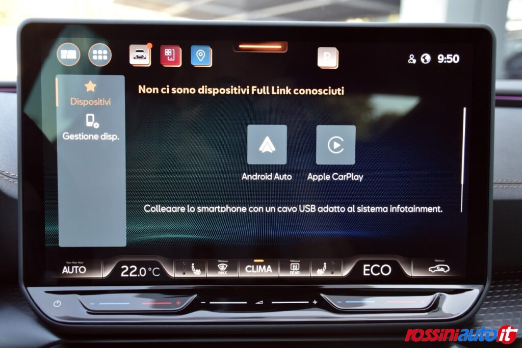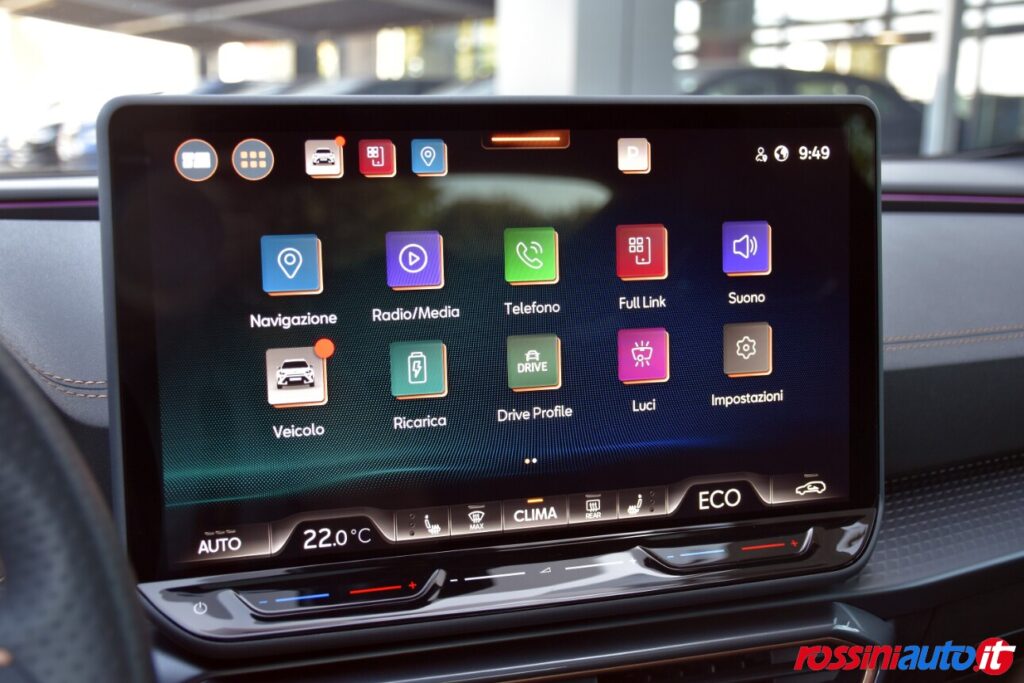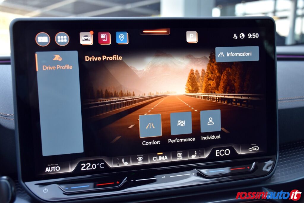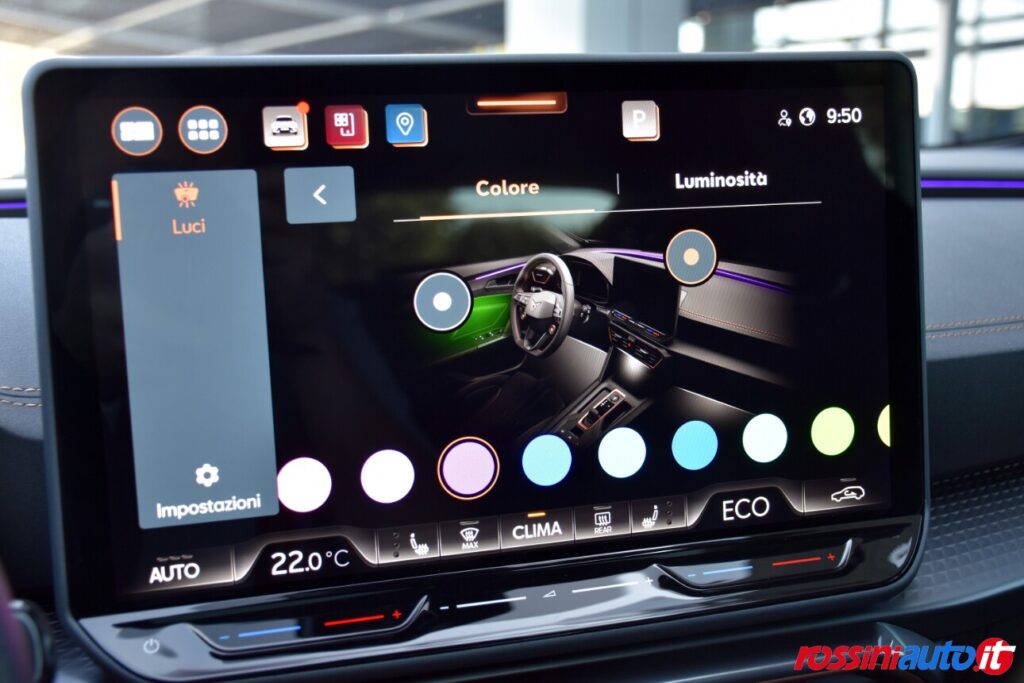 La Cupra Formentor esce gia di serie ben equipaggiata ed oltre alla grande Radio Touch da 12,9” con Apple Car Play/Androir Wireless troviamo il Quadro strumenti digitale, ricarica Wireless per Smartphone,i fari Full LED anteriori e posteriori, sensori di parcheggio all’anteriore e al posteriore, ACC Adaptive Cruise Control, Lane Assist, climatronic a tre zone e tantissimo altro ancora…
