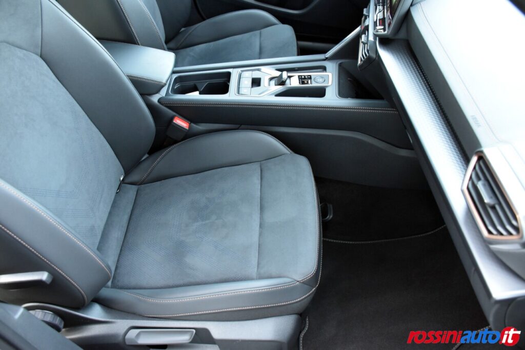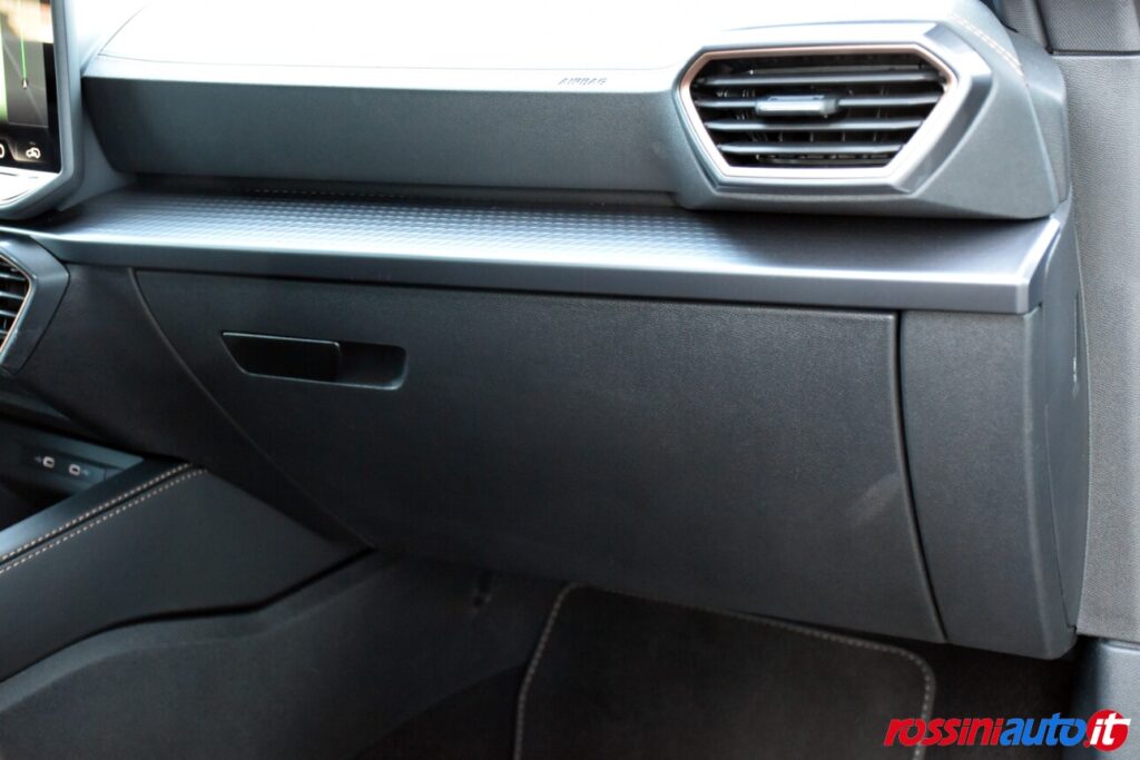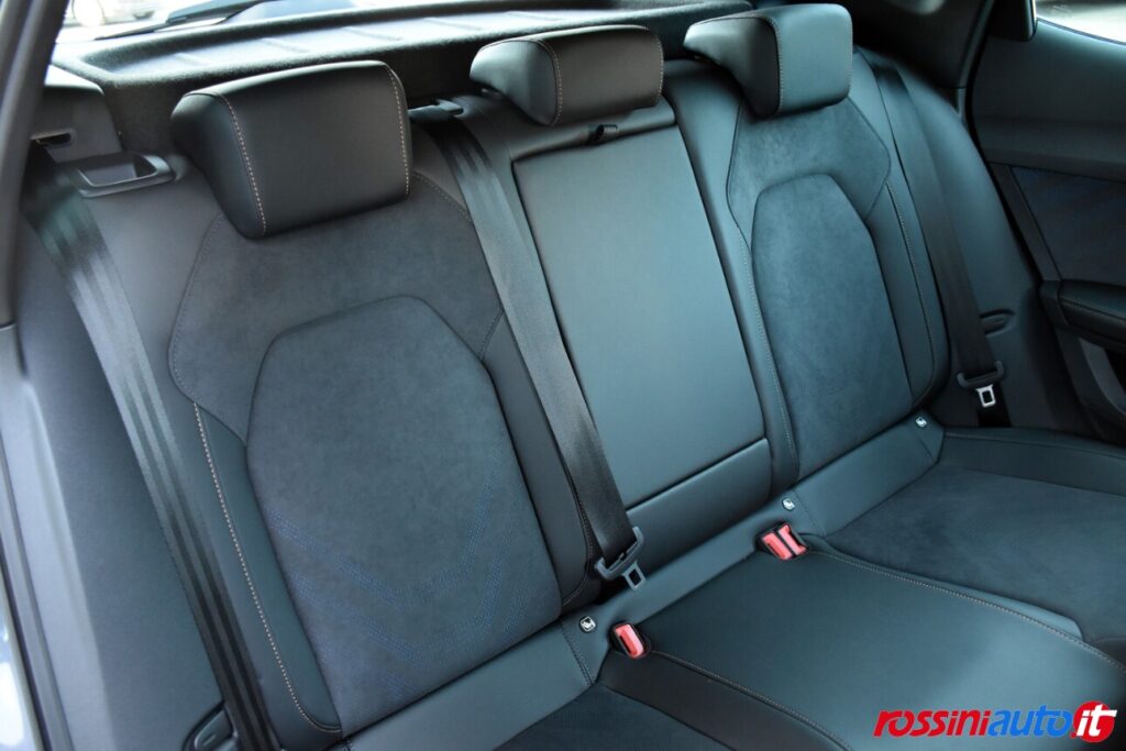 2 USB Tipo C anteriori e 2 posteriori, 7 airbag (2 frontali, 2 laterali, 2 tendina, 1 centrale), ABS (Sistema di frenata antibloccaggio), Alzacristalli elettrici anteriori e posteriori, Avvisatore acustico mancato allacciamento cintura di sicurezza, Battitacco portiere anteriori illuminato, Bocchette della ventilazione con dettagli in color rame, Bracciolo anteriore con portaoggetti integrato, Bracciolo posteriore, Cielo abitacolo nero, Climatronic tri-zona con sistema Air-care, Cornice finestrini in colore nero lucido, ACC Adaptive Cruise control, CUPRA Virtual Cockpit, DAB – Digital Audio Broadcasting, Doppio terminale di scarico visibile, Drive profile select, ESP (Controllo elettronico della stabilità), Fari fendinebbia LED con funzione cornering, Fari Full Led con indicatori di direzione dinamici, Freno di stazionamento elettrico, Front assist con sistema di frenata di emergenza e rilevamento pedoni e ciclisti, Full Link Wireless (funzione wireless disponibile con Apple CarPlay), Illuminazione ambientale a LED Smart Wraparound (cruscotto e portiere anteriori), Illuminazione Coast-to-coast con Welcome light (cerimonia di apertura e chiusura), Illuminazione interna a LED, Kessy Advanced (Sistema di avviamento senza chiave), Lane Assist (sistema di mantenimento della corsia), Limitatore di velocità, Logo CUPRA sulla griglia frontale e sul portellone posteriore, Paraurti e spoiler posteriore sportivi, Prese da 12 V anteriore e nel vano bagagli, Proiezione “CUPRA” sotto gli specchietti retrovisori esterni, Regolazione lombare sedile conducente, Sedili anteriori supersportivi Bucket in tessuto e similpelle con design CUPRA, Sedili posteriori abbattibili e ripiegabili 1/3 e 2/3, Sensori di parcheggio anteriori e posteriori, Sistema ancoraggio ISOFIX x2 (i-Size) + Top Tether x2 nei sedili posteriori, Sistema di controllo della pressione pneumatici, Sistema di rilevamento della stanchezza, Sistema E-Call (chiamata di emergenza), Sospensioni sportive CUPRA, Specchietti esterni grigio lucido riscaldati e richiudibili elettricamente, Sterzo progressivo, Tyre fit, Vetri posteriori oscurati, Volante multifunzione in pelle con design CUPRA e levette del cambio, XDS (Sistema differenziale elettronico).