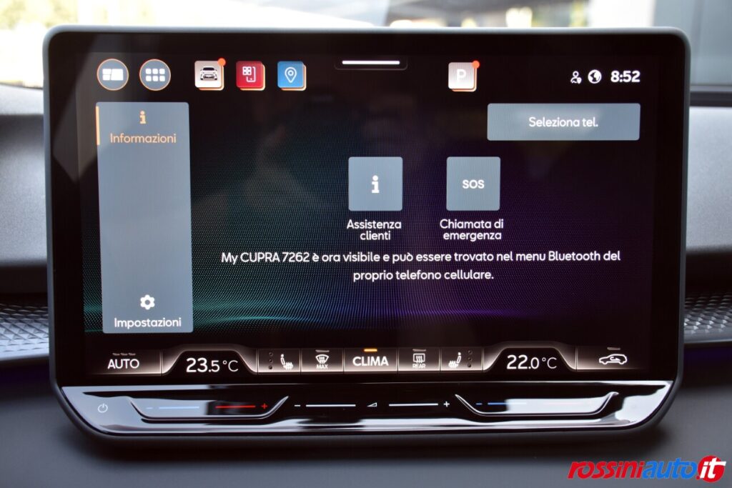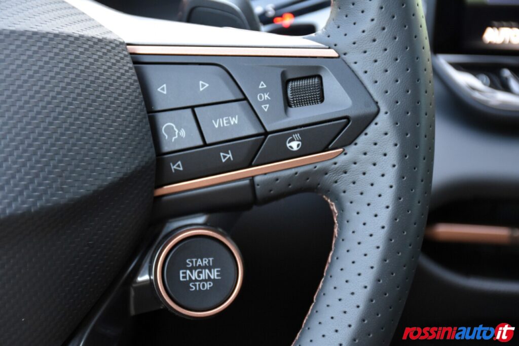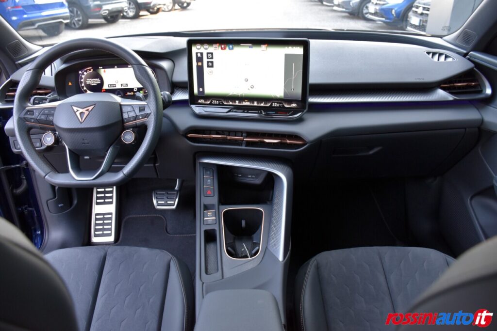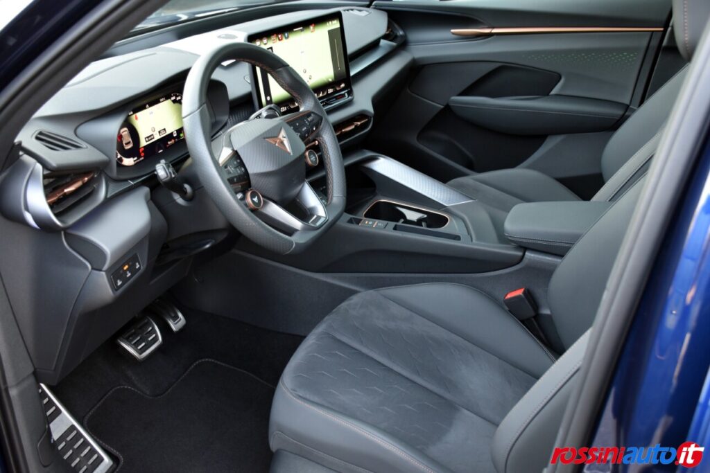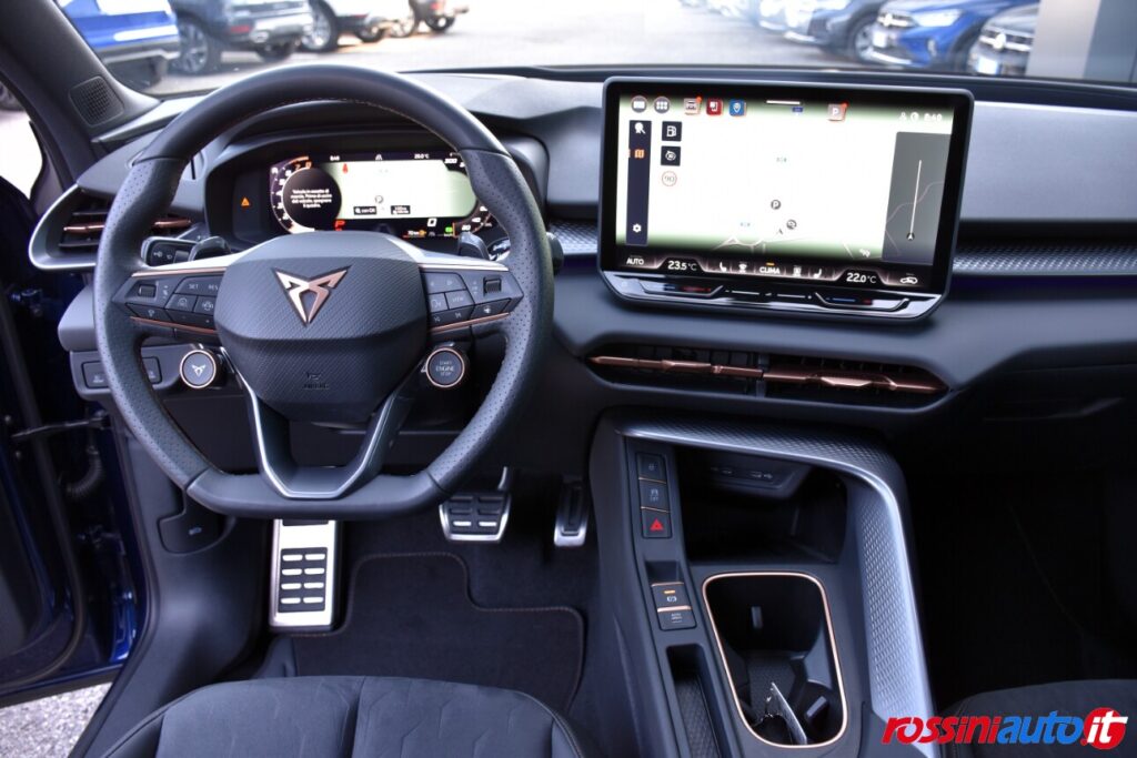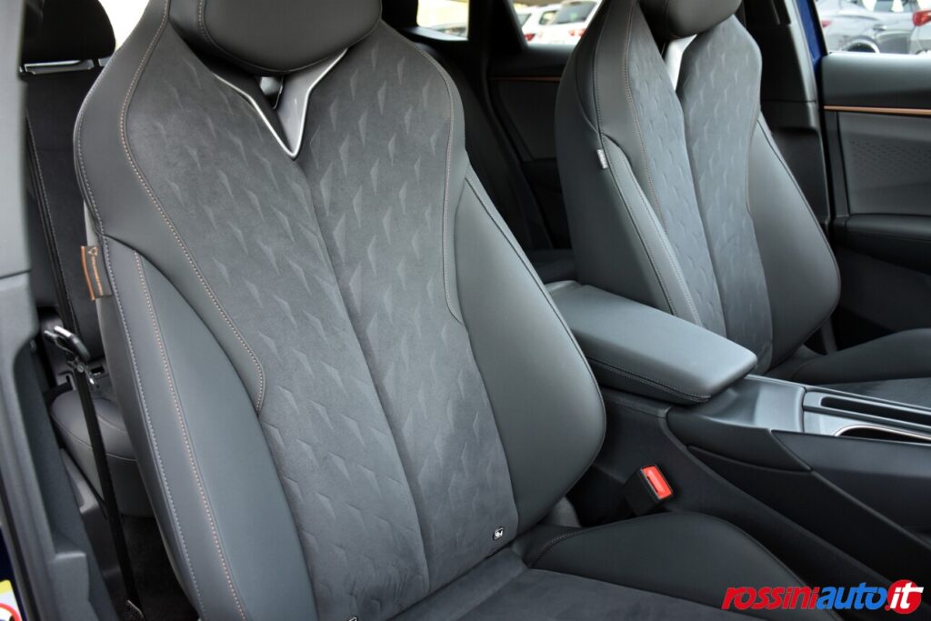 2 airbag frontali con disattivazione airbag passeggero + airbag centrale + 2 airbag laterali + 2 airbag a tendina, 4 usb tipo c, 2 nella fila anteriore e 2 nella fila posteriore, abs (sistema di frenata antibloccaggio), alzacristalli elettrici anteriori e posteriori, avvisatore acustico mancato allacciamento cintura di sicurezza, bracciolo anteriore, cerchi in lega da 18″ machined atomic, cielo abitacolo nero, climatronic, connectivity box (sistema di ricarica wireless per smartphone), connettività car2x, cruise control, cupra virtual cockpit da 10,25″, dab (digital audio broadcasting), dashboard con design parametrico e elementi a contrasto in colore copper, doppio fondo nel vano bagagli, drive profile, esp (controllo elettronico della stabilità), fari fendinebbia con funzione cornering, fari full led anteriori con firma luminosa triangolare, freno di stazionamento elettrico, front assist con sistema di frenata di emergenza e rilevamento pedoni e ciclisti, full link wireless, funzione coming & leaving home, illuminazione interna (luci di lettura anteriori e posteriori, vano piedi e cassetto porta oggetti), illuminazione posteriore full led con logo illuminato incorporato nel gruppo ottico, indicatori di direzione posteriori dinamici, inserti decorativivi tech copper, keyless go (sistema di avviamento senza chiave), kit di riparazione pneumatici, lane assist (sistema di mantenimento della corsia), mancorrenti al tetto in colore nero lucido, paraurti sportivi, pedaliera con inserti metallici, regolazione lombare e in altezza sedili anteriori, sedili anteriori avvolgenti in tessuto e similpelle, sedili posteriori abbattibili, sensori di parcheggio anteriori e poteriori, sensori luci e pioggia, sistema ancoraggio isofix i-size (passeggero anteriore e sedute laterali divano posteriore) + 2 top, sistema di infotainment con display touch da 12,9″, sistema di riconoscimento della stanchezza, sistema per la chiamata di emergenza e-call, specchietti esterni regolabili elettricamente, traffic sign recognition (riconoscimento dei segnali stradali), videocamera posteriore, volante con leve del cambio integrate, volante multifunzione racing in pelle con pulsanti di avviamento e di selezione della modalità di guida.
