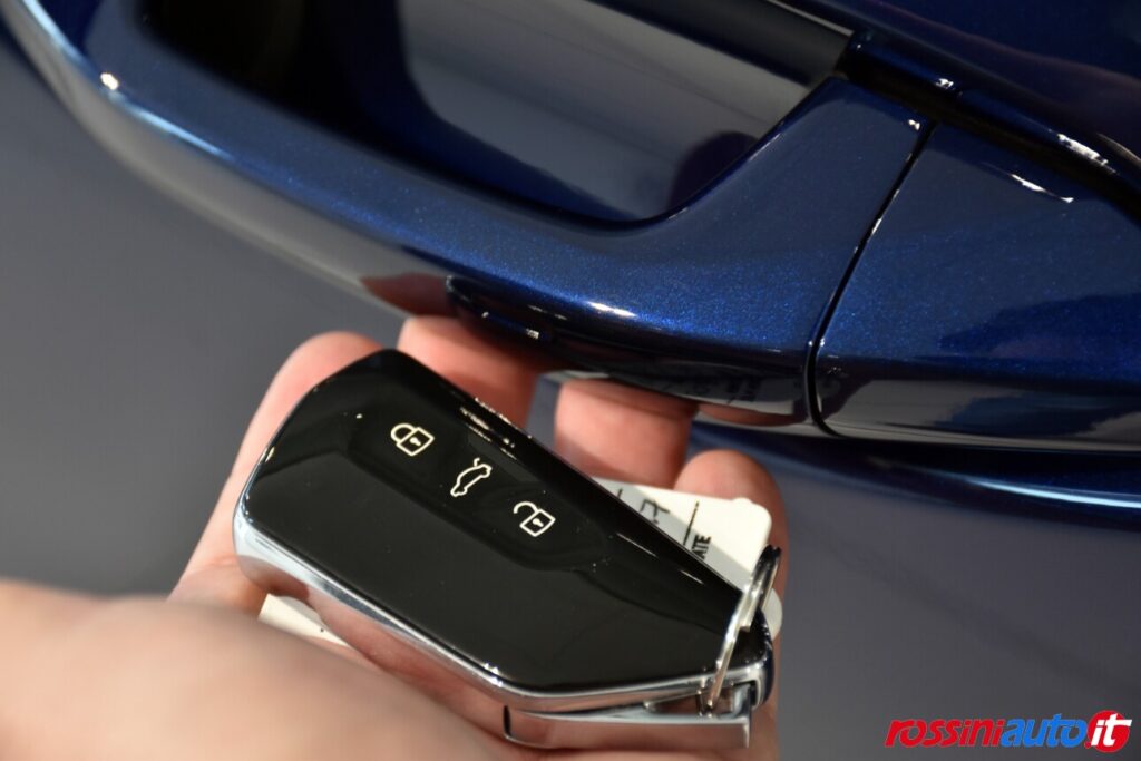 Oltre alla già ricca dote di optional la vettura è stata personalizzata con ulteriori 5.455 EURO Di accessori e troviamo, oltre alla vernice metallizzata Cosmos Blue, Il Moonlight Design con Sedili anteriori a Gusio, riscaldabile e guidatore regolabile elettricamente con selleria in microfibra/EcoPelle, Digital Drive con Sistema di Navigazione e Head-Up Display, l’Intelligent Drive con telecamere e sensori a 360° con funzione di parcheggio automatico e ADAS ampliati con Lane e Side/Exit Assist e l’EDGE Pack…