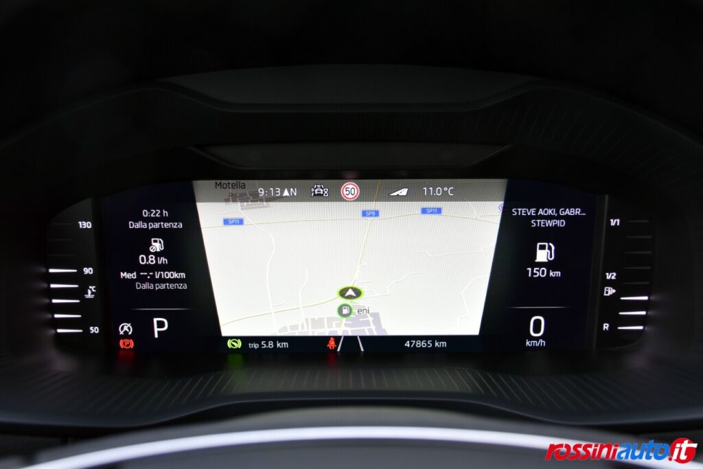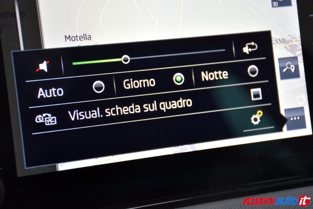 Internamente troviamo invece sedili sportivi in tessuto, climatronic bi-zona con AirCare – purificatore, Quadro Strumenti digitale basic, Radio Touch Screen con DAB+, Vivavoce Bluetooht, APP Connect – Apple Car Play/Android Auto Wireless e sistema di navigazione e tantissimo altro ancora (Vedi liste sotto).