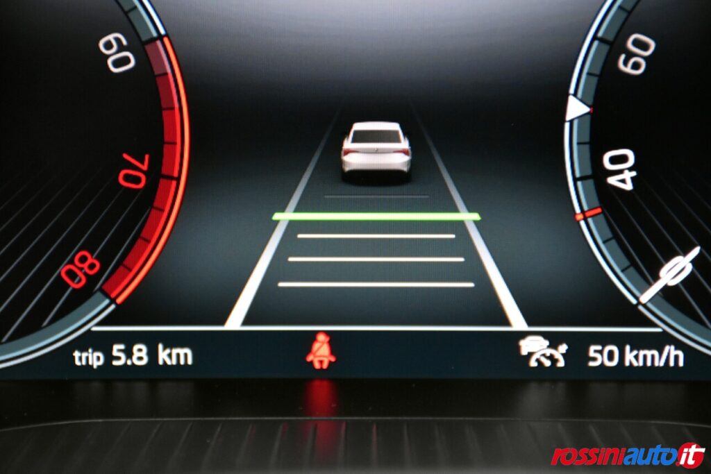 Airbag guida e passeggero con disattivazione + laterali anteriori + per la testa a tendina + per le ginocchia lato conducente, Aletta parasole con specchietti di cortesia illuminati, Altoparlanti (8), Alzacristalli elettrici anteriori e posteriori, Antenna al tetto, Appoggiatesta anteriori e posteriori regolabili in altezza, Attivazione luci emergenza e sblocco automatico chiusura centralizzata in caso di incidente, Ausilio partenza in salita, Bracciolo centrale anteriore con vano Jumbo Box refrigerato, Bracciolo post. ribaltabile con portabicchieri e apertura nel vano bagagli, Cambio automatico DSG a 7 marce, con modalità manuale tipo Tiptronic, Cappelliera estraibile, Chiusura centralizzata con telecomando, Chiusura di sicurezza per bambini alzacristalli ant. e post., Climatronic – Climatizzatore automatico bizona con AQS (Air Quality Sensor), Dispositivo antiavviamento elettronico (immobilizer), ESC, incl. ABS, MSR, ASR, EDS, HBA, DSR, RBS, MKB, XDS+, Fari EcoLED con AFS a reg. dinamica e fendinebbia con funz. Curvante, Fari Fendinebbia anteriori e posteriore a LED, Filtro antipolline, Freno di stazionamento elettromeccanico con funzione Auto Hold, Front Assistant con riconoscimento pedoni e frenata autom. Emergenza, Griglia frontale con cornice e listelli cromati, Inserti decorativi “Cool Brushed/Graphite Metallic”, Interni in tessuto con inserti decorativi – Cool Brushed/Graphite Metallic, Light Assistant (coming home, living home, tunnel light, day light), Luce di stop a LED in spoiler sul tetto, Luci posteriori a LED, Lunotto posteriore in vetro atermico e riscaldabile, Mancorrenti al tetto di colore nero, Navigatore sat. Amundsen display 8″,USB, Conn. Apple, 2 slot SD, Com.vocali.,Wi-Fi, Mappe Europa, Portaocchiali, Presa 12V nel bracciolo anteriore e baule, Regolatore di velocità con limitatore di velocità, Ricezione radio digitale DAB+, Sedili 60/40 con schienali divisi e reclinabili, Sedili anteriori regolabili in altezza con supporto lombare, Sensore pioggia, Servosterzo elettromeccanico, Servosterzo elettromeccanico, Sistema di ancoraggio Isofix per 2 seggiolini per bambini sui sedili post., Sistema Start/Stop e funzione di recupero dell’energia in frenata, SmartLink+ – Include CarPlay (Apple), Android Auto (Google), MirrorLink, Specchietto retrovisore interno schermabile automaticamente, Parking Distance Control – Sensori di parcheggio post. con funz. Frenante, Telecamera posteriore, Volante multifunzionale a 3 razze in pelle (comandi radio/telefono) e piccolo pacchetto pelle.