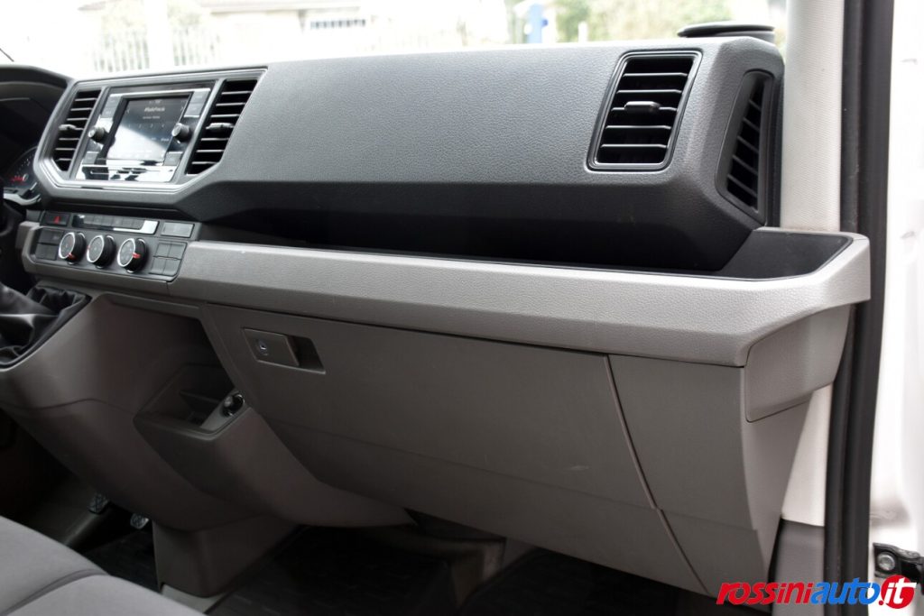 1 chiave estraibile a radiofrequenza, 1 chiave rigida, 2 altoparlanti anteriori, 4 cerchi in acciaio 6 1/2 j x 16, alternatore trifase 180°, airbag per conducente, alzacristalli elettrici anteriori, asse anteriore, rinforzato (2.200 kg di carico supportato), assistente di mantenimento corsia “lane assist”, assistente per partenze in salita – hill holder, attrezzi di bordo e martinetto rinforzato, batteria 520a 92ah, calandra, non verniciata, con un listello cromato, cambio manuale a 6 marce, cassetto portaoggetti, chiusura centralizzata con telecomandoa radiofrequenze azionamento interno senza dispositivo safe, cintura di sicurezza automatica a tre punti ant. incl. pretensionatore elettrico sul lato guida, Climatizzatore semiautomatico monozona in cabina, coprimozzo centrale, dispositivo antiavviamento elettronico, divano 4 posti nella 2a fila, esp (sistema elettronico di stabilità) e abs, freni a disco anteriori 16″ (diametro 480mm), illuminazione cabina di guida con luci led, indicatori di direzione a led, luci diurne, omologazione n1 incompleta, parabrezza in vetro stratificato atermico, parete posteriore cabina senza rivestimento, plancia portastrumenti con installazioni speciali, predisposizione per luci di ingombro laterali, proiettori alogeni doppi (h7), Radio Composition Color con DAB+ – Vivavoce Bluetooth – APP Connect Apple Car Play/Android Auto, rivestimenti in stoffa “austin, rivestimento pavimento nella cabina di guida in gomma, ruota di scorta di dimensioni normali in acciaio, sedile doppio nella cabina a destra con vano portaoggetti, segnalatore acustico per cintura di sicurezza conducente non allacciata, senza occhielli di ancoraggio, servosterzo elettromeccanico, sistema di osservazione perimetrale “front assist” con funz. arresto e frenata emerg. in città, sospensioni e ammortizzatori, versione standard, specchietti retrovisori esterni convessi regolabili e riscaldabili elettricamente, traversa terminale in versione larga avvitata, volante regolabile in altezza e profondità.