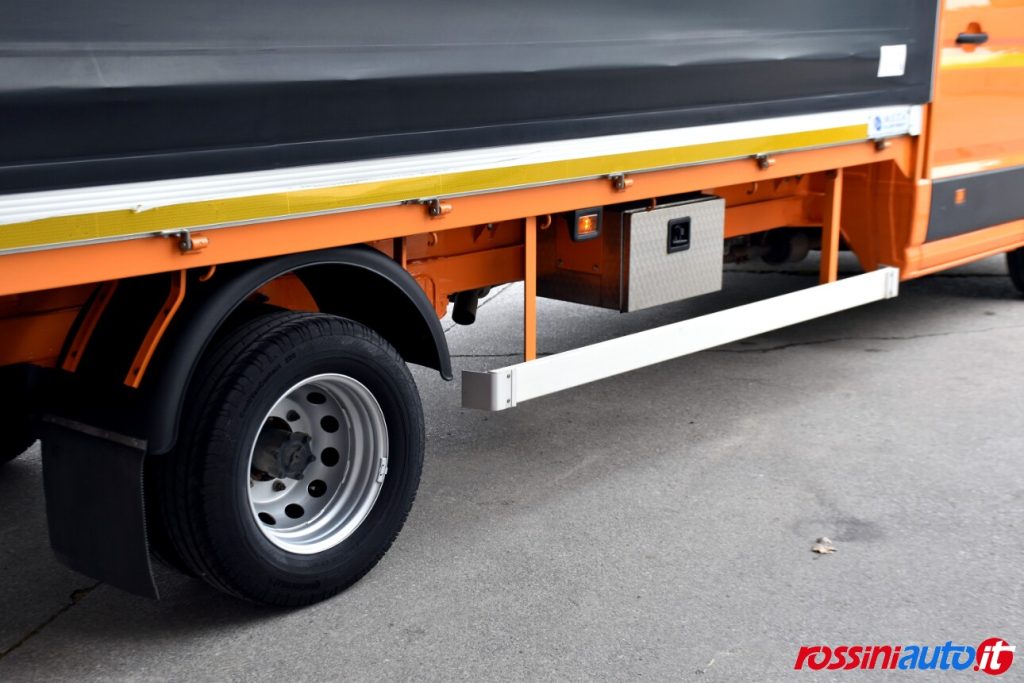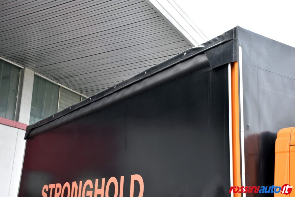 Oltre a tutti questi accessori di serie, l’autocarro è stato personalizzato con ulteriori 9.564 EURO (+ IVA) di optional tra cui troviamo, oltre alla vernice Arancio Brillante pastello, cassetto portaoggetti illuminato e con serratura, doppi cunei e con Furgonatura con cassone fisso, centina e telo scorrevole sui 3 lati con sponde in alluminio da 400 mm.
