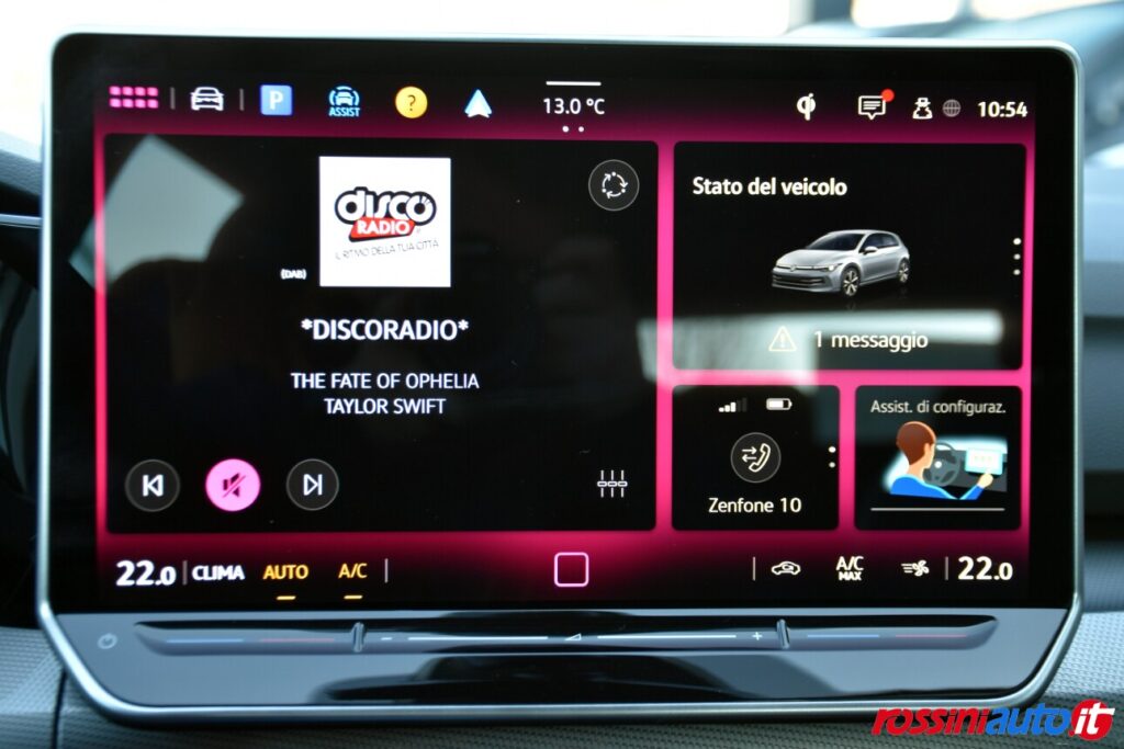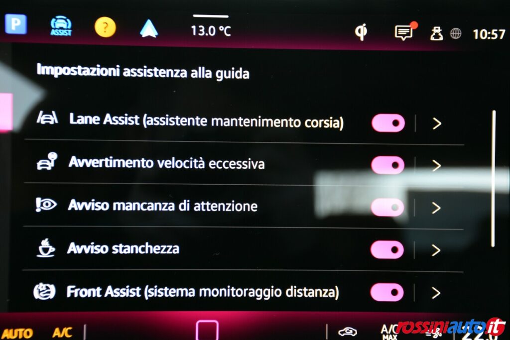 Di serie si fa riconoscere subito grazie ai cerchi in lega da ’17, Fari I.Q LED Performance, sensori di parcheggio anteriori e posteriori e l’utilissima retrocamera, ma è al suo interno che la vettura racchiude tutte le novità di questo allestimento! quadro strumenti digitale da 10,5” con nuova grafica affiancato dal grande sistema di infotainment da 12.9” e connettività “Ciao Volkswagen”, APP Connect Wireless, ricarica smartphone wireless, Dispositivi ADAS con ACC-Adaptive Cruise Control, Front Assist e Lane/Side Assist, Sensore Luci/Pioggia, specchietto interno fotocromatico, climatizzatore automatico a 3 zone, Sedili Sportivi in EcoPelle/Microfibra dinamica nera con sedile guidatore a regolazione elettronica e 3 canali di memoria e tantissimo altro ancora…