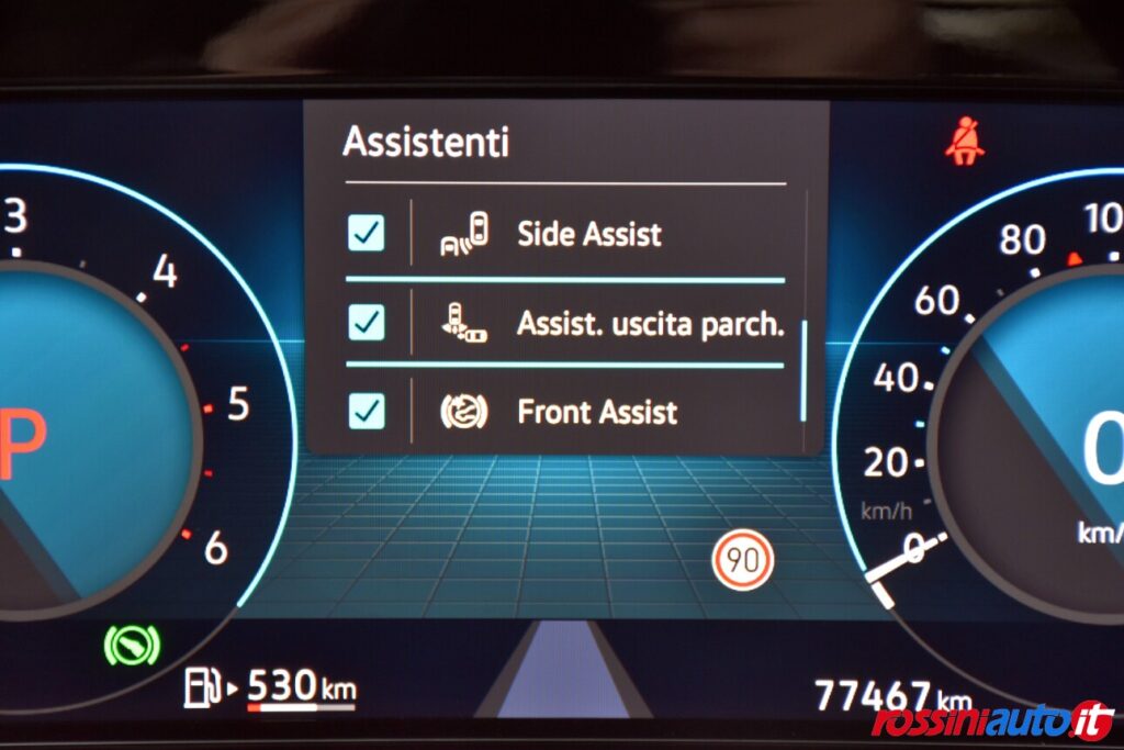 4 prese C-USB (2 anteriori e 2 posteriori con sola funzione di carica), 6 altoparlanti, ABS + ESC + ASR + EDS + MSR, Airbag guida e passeggero + per la testa anteriori e posteriori + laterali anteriori, App-Connect, Appoggiatesta (3) posteriori, Appoggiatesta anteriori ottimizzati contro il colpo di frusta WOKS, Bluetooth, Bracciolo centrale anteriore, Cambio automatico DSG a 7 rapporti, Cerchi in lega da 16″, Chiusura centralizzata con telecomando, Cinture di sicurezza posteriori a tre punti, Climatronic, Cruise control adattivo – ACC, Digital Cockpit da 10,25″, Dispositivo disattivazione airbag passeggero, DRL Led (profilo superiore proiettore), Fari a LED, Fatigue Detection – Rilevatore di stanchezza del guidatore, Freno di staz. e funzione “Auto Hold”, Front Assist, Gruppi ottici posteriori a tecnologia LED, Lane Assist, Navigatore satellitare “Discover Media”, Park Pilot – Sensori di parcheggio anteriori e posteriori, Regolazione lombare sedile guida, Retrovisori termici reg. elettricamente, Ricezione Radio Digitale DAB+, Rivestimento sedili in tessuto “Maze”, Schienale posteriore divisibile e ribaltabile separatamente, Sedile guida reg. in altezza, Servosterzo elettromeccanico, Sistema Keyless Go, Tergilunotto, Tire Mobility Set (kit riparazione pneumatici), Vetri elettrici anteriori e posteriori, Volante multifunzionale in pelle, Volante reg. in altezza e profondità, Wireless App Connect.
