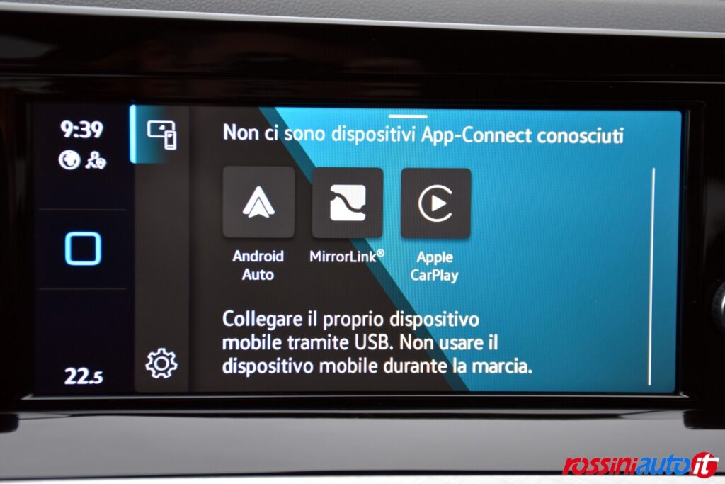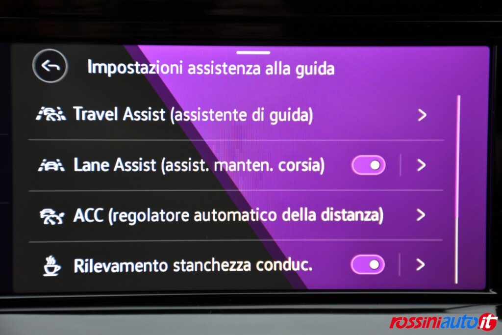 Di serie la vettura è ricca di dotazioni di serie per il comfort di marcia e la sicurezza, infatti troviamo fanaleria anteriore e posteriore a EcoLED, gli utili sensori di parcheggio anteriori e posteriori ed il sensore luce. Al suo interno la plancia Hi-Tech presenta al guidatore il quadro strumenti interamente digitiale da 10,5 pollici completamente personalizzabile, l’infotainment Touch Screen e le pulsantiere interamente a Soft Touch con APP Connect (funzionamento con cavetto) e climatronic monozona automatico. Per la sicurezza oltre a ben 8 Airbag e tutti i controlli di stabilità abbiamo gli ADAS di livello 2 con ACC-Adaptive Cruise Control ed il Lane Assist mantenimento della corsia.