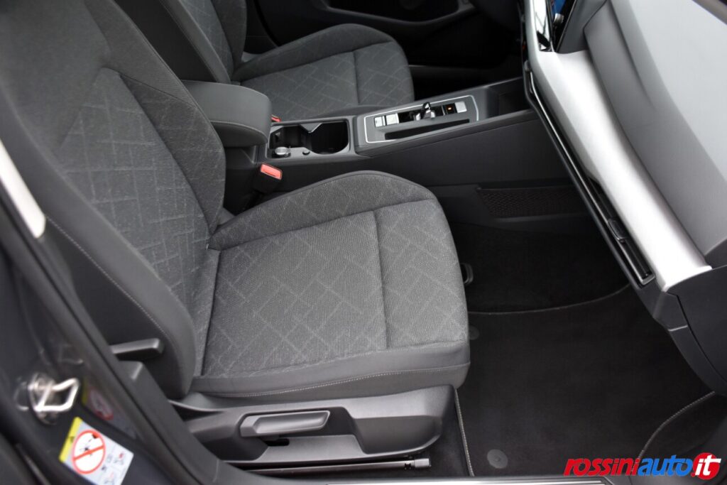 4 prese C-USB (2 anteriori e 2 posteriori con sola funzione di carica), 6 altoparlanti, ABS + ESC + ASR + EDS + MSR, Airbag guida e passeggero + per la testa anteriori e posteriori + laterali anteriori, App-Connect, Appoggiatesta (3) posteriori, Appoggiatesta anteriori ottimizzati contro il colpo di frusta WOKS, Bluetooth, Bracciolo centrale anteriore, Cambio automatico DSG a 7 rapporti, Cerchi in lega da 16″, Chiusura centralizzata con telecomando, Cinture di sicurezza posteriori a tre punti, Climatronic, Cruise control adattivo – ACC, Digital Cockpit da 10,25″, Dispositivo disattivazione airbag passeggero, DRL Led (profilo superiore proiettore), Fari a LED, Fatigue Detection – Rilevatore di stanchezza del guidatore, Freno di staz. e funzione “Auto Hold”, Front Assist, Gruppi ottici posteriori a tecnologia LED, Lane Assist, Navigatore satellitare “Discover Media”, Park Pilot – Sensori di parcheggio anteriori e posteriori, Regolazione lombare sedile guida, Retrovisori termici reg. elettricamente, Ricezione Radio Digitale DAB+, Rivestimento sedili in tessuto “Maze”, Schienale posteriore divisibile e ribaltabile separatamente, Sedile guida reg. in altezza, Servosterzo elettromeccanico, Sistema Keyless Go, Tergilunotto, Tire Mobility Set (kit riparazione pneumatici), Vetri elettrici anteriori e posteriori, Volante multifunzionale in pelle, Volante reg. in altezza e profondità, Wireless App Connect.
