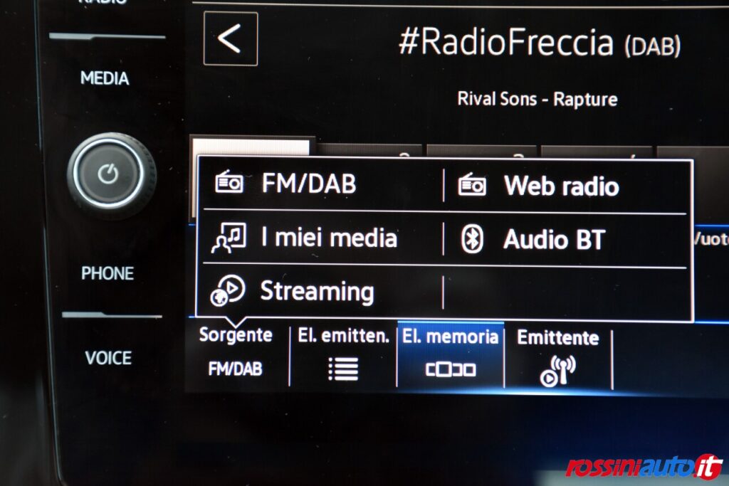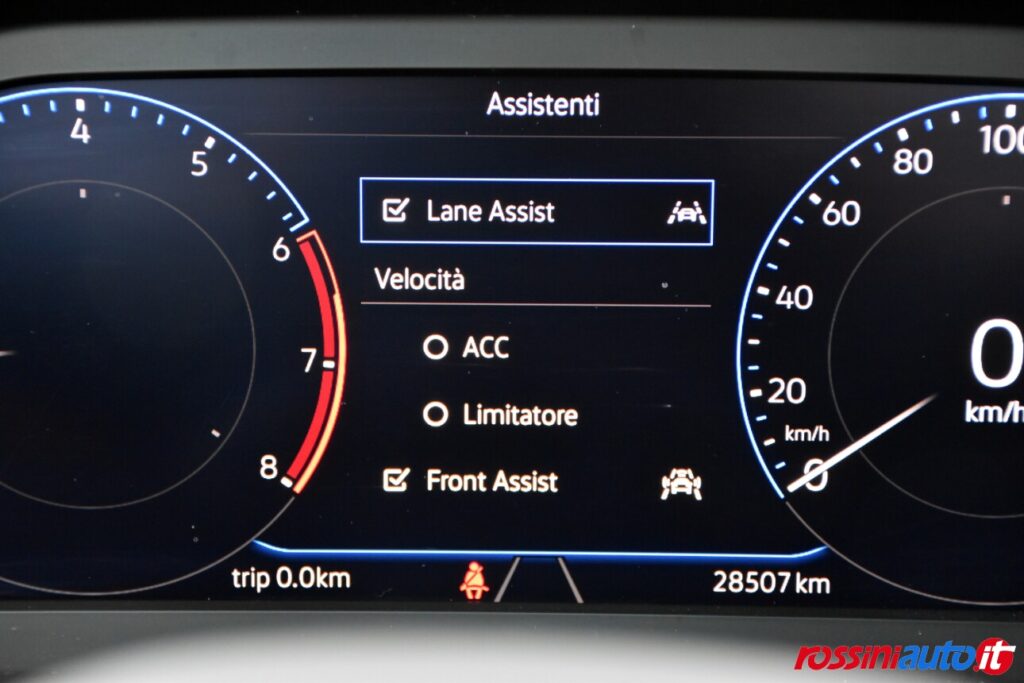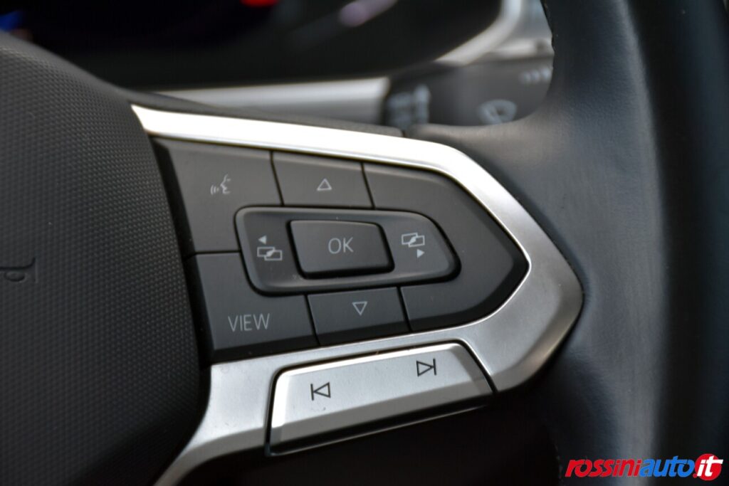 2 luci di lettura anteriori, 2 luci LED nel vano piedi anteriore, 2 Prese C-USB anteriori, 2 x USB-C nella parte posteriore del bracciolo con la sola funzione di ricarica, 6 altoparlanti, ACC – Adaptive Cruise Control “Stop & go”, Airbag a tendina per passeggeri anteriori e posteriori + per conducente e passeggero (lato passeggero disattivabile), Alzacristalli elettrici anteriori e posteriori, Ambient Light, App-Connect con funzione wireless per CarPlay(Apple), Android Auto (Google), Applicazioni cromate, Applicazioni cromate ai tasti anteriori, Appoggiatesta anteriori regolabili, Assistente di mantenimento corsia Lane Assist, Attrezzi di bordo, Bluetooth, Bocchette di aerazione posteriori, Bracciolo centrale anteriore con vano portaoggetti regolabile in altezza e lunghezza, Cambio manuale a 6 marce, Cassetto sotto il sedile ant. destro, Chiusura centralizzata con telecomando, Climatizzatore manuale, Controllo pressione pneumatici, Controllo Elettronico Stabilità (ESC) ABS, ASR, EDS, MSR e stabilizz. Rimorchio, Digital Cockpit Pro da 10,25″, Dispositivo antiavviamento elettronico, Divano post. non sdoppiabile, schienale divisibile e ribaltabile, appoggiabraccia centrale, Emergency Call, Fari anteriori I.Q LED Performance e posteriori a LED, Fatigue Detection – Rilevatore di stanchezza del conducente, Freno di stazionamento elettronico con funzione Auto-Hold, Front Assist con frenata d’emergenza, Funzione Coming Home e funzione Leaving Home, Hill Start Assist, Illuminazione ambiente a LED bianca, Lane Assist (Sistema di assistenza al mantenimento di corsia), Light Assist – Regolazione automatica abbaglianti, Listelli sottoporta nei vani porta, Mancorrenti cromati, Parabrezza in vetro atermico, Park Assist: Sistema di parcheggio automatico, Park Pilot – Sensori di parcheggio anteriori e posteriori, Piano di copertura vano bagagli regolabile ed estraibile, Radio “Ready2Discover” con display touchscreen da 8”, Ready for We Connect e We Connect Plus, Ricezione Radio Digitale DAB+, Riconoscimento pedoni, Rivestimento sedili in tessuto/pelle, Sedile conducente e passeggero regolabili in altezza, Sedili anteriori comfort, Sensore pioggia, Servosterzo elettromeccanico in funzione della velocità, Sistema di protezione proattivo, Sistema ISOFIX per ancoraggio seggiolini nel divano posteriore, Sistema Start/Stop con sistema di recupero dell’energia in frenata, Specchietti retrovisori esterni riscaldabili, regolabili e ripiegabili elettricamente, Specchietto retrovisore interno schermabile automaticamente, Tire Mobility Set (kit riparazione pneumatici), Volante a 3 razze multifunzione in pelle con palette al volante, Volante regolabile in altezza e profondità.