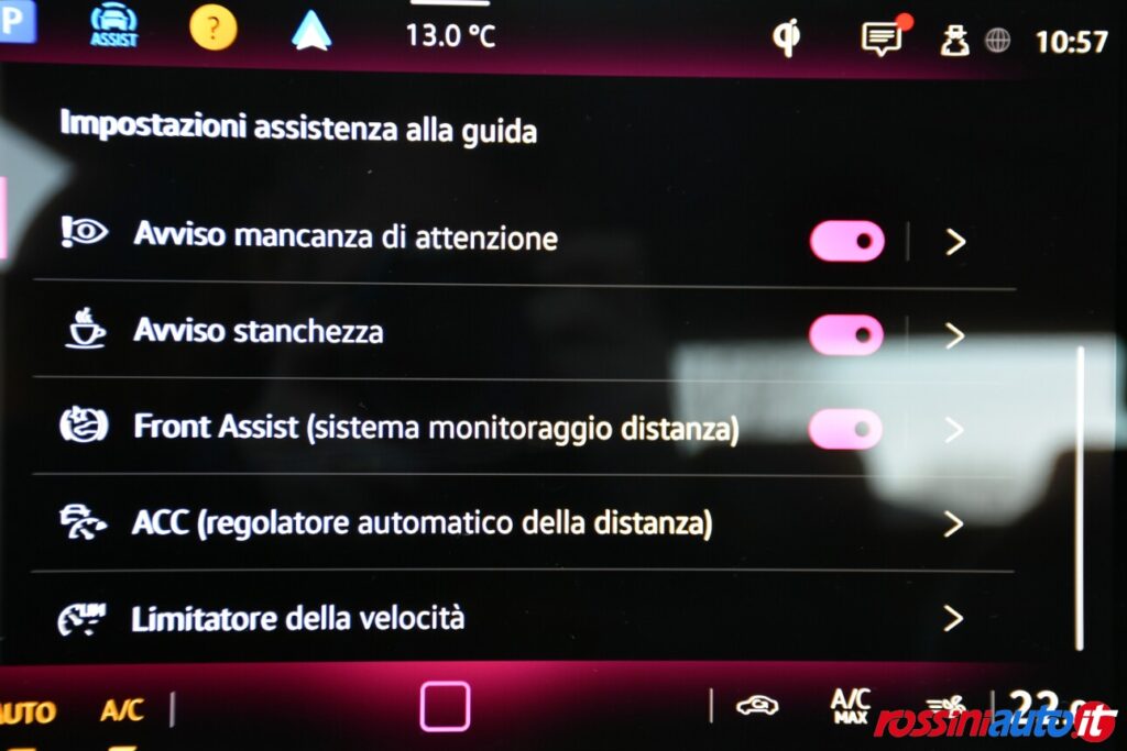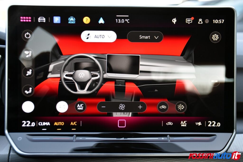 Di serie si fa riconoscere subito grazie ai cerchi in lega da ’17, Fari I.Q LED Performance, sensori di parcheggio anteriori e posteriori e l’utilissima retrocamera, ma è al suo interno che la vettura racchiude tutte le novità di questo allestimento! quadro strumenti digitale da 10,5” con nuova grafica affiancato dal grande sistema di infotainment da 12.9” e connettività “Ciao Volkswagen”, APP Connect Wireless, ricarica smartphone wireless, Dispositivi ADAS con ACC-Adaptive Cruise Control, Front Assist e Lane/Side Assist, Sensore Luci/Pioggia, specchietto interno fotocromatico, climatizzatore automatico a 3 zone, Sedili Sportivi in EcoPelle/Microfibra dinamica nera con sedile guidatore a regolazione elettronica e 3 canali di memoria e tantissimo altro ancora…