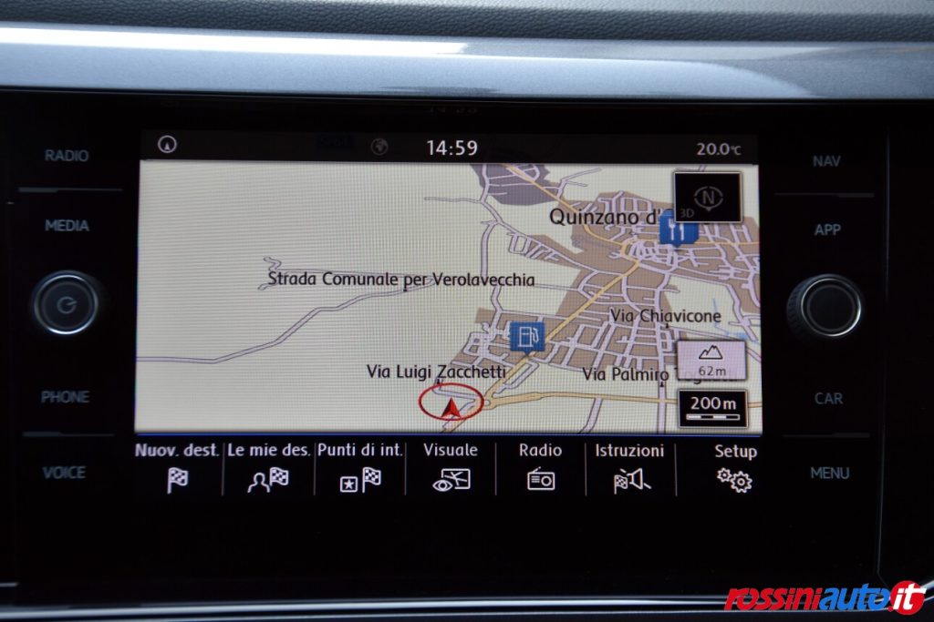 Questo pacchetto contiene il Sistema di navigazione cartografico con predisposizione APP Connect, il climatronic automatico bizona ed i sensori di parcheggio con radar e segnalatore acustico.