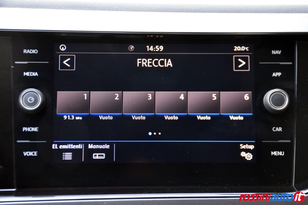 Airbag guida e passeggero + laterali + per la testa lato passeggero anteriore e posteriori, Alette parasole con specchietti di cortesia illuminati, Alzacristalli anteriori e posteriori elettrici con funzione comfort, Bracciolo anteriore con 2 porte USB di ricarica nella parte posteriore, Cambio manuale a 5 marce, Chiusura centralizzata con radiocomando, Climatizzatore manuale, Controllo elettronico della stabilità (ESC) con assistenza nelle partenze in salita, Divano posteriore con schienale frazionato abbattibile asimmetricamente, Fari fendinebbia con funzione cornering, Fatigue Detection – Rilevatore di stanchezza del guidatore, Front Assist – Sistema di assistenza alla frenata di emergenza City e rilevamento pedoni, Gusci degli specchietti retrovisori e dettagli in tinta con la carrozzeria, Illuminazione del vano bagagli e vano piedi, Indicatore di controllo della pressione degli pneumatici, Limitatore di velocità, Luci di lettura supplementari posteriori, Luci diurne e illuminazione della targa a LED, Radio “Composition Media” con display da 8 pollici, USB e Bluetooth, Regolazione in altezza del sedile conducente e passeggero, Sistema di frenata anti collisione multipla (Multicollision Brake), Specchietti retrovisori esterni regolabili e riscaldabili elettricamente, TCS con EDS (controllo elettronico della trazione), Volante, freno a mano e pomello del cambio in pelle.