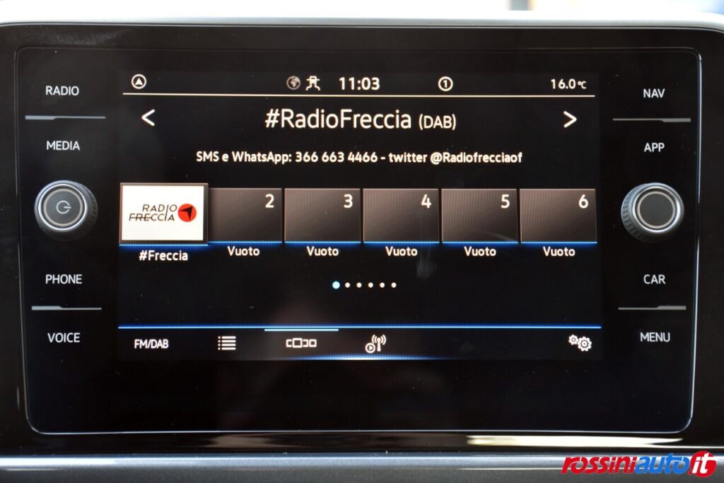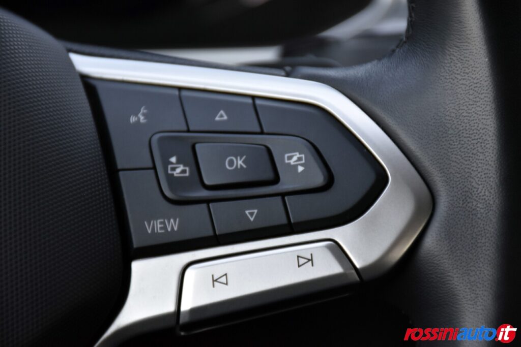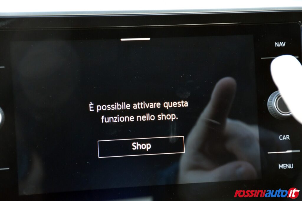 2 luci di lettura anteriori, 2 luci LED nel vano piedi anteriore, 2 Prese C-USB anteriori, 2 x USB-C nella parte posteriore del bracciolo con la sola funzione di ricarica, 6 altoparlanti, ACC – Adaptive Cruise Control “Stop & go”, Airbag a tendina per passeggeri anteriori e posteriori + per conducente e passeggero (lato passeggero disattivabile), Alzacristalli elettrici anteriori e posteriori, Ambient Light, App-Connect con funzione wireless per CarPlay(Apple), Android Auto (Google), Applicazioni cromate, Applicazioni cromate ai tasti anteriori, Appoggiatesta anteriori regolabili, Assistente di mantenimento corsia Lane Assist, Attrezzi di bordo, Bluetooth, Bocchette di aerazione posteriori, Bracciolo centrale anteriore con vano portaoggetti regolabile in altezza e lunghezza, Cambio automatico DSG a 7 rapporti, Cassetto sotto il sedile ant. destro, Cerchi in lega 7Jx17″, Chiusura centralizzata con telecomando, Climatizzatore manuale, Controllo pressione pneumatici, Controllo Elettronico Stabilità (ESC) ABS, ASR, EDS, MSR e stabilizz. Rimorchio, Digital Cockpit Pro da 10,25″, Dispositivo antiavviamento elettronico, Divano post. non sdoppiabile, schienale divisibile e ribaltabile, appoggiabraccia centrale, Emergency Call, Fari anteriori I.Q LED Performance e posteriori a LED, Fatigue Detection – Rilevatore di stanchezza del conducente, Freno di stazionamento elettronico con funzione Auto-Hold, Front Assist con frenata d’emergenza, Funzione Coming Home e funzione Leaving Home, Hill Start Assist, Illuminazione ambiente a LED bianca, Lane Assist (Sistema di assistenza al mantenimento di corsia), Light Assist – Regolazione automatica abbaglianti, Listelli sottoporta nei vani porta, Mancorrenti cromati, Parabrezza in vetro atermico, Park Assist: Sistema di parcheggio automatico, Park Pilot – Sensori di parcheggio anteriori e posteriori, Piano di copertura vano bagagli regolabile ed estraibile, Radio “Ready2Discover” con display touchscreen da 8”, Ready for We Connect e We Connect Plus, Ricezione Radio Digitale DAB+, Riconoscimento pedoni, Rivestimento sedili in tessuto/pelle, Sedile conducente e passeggero regolabili in altezza, Sedili anteriori comfort, Sensore pioggia, Servosterzo elettromeccanico in funzione della velocità, Sistema di protezione proattivo, Sistema ISOFIX per ancoraggio seggiolini nel divano posteriore, Sistema Start/Stop con sistema di recupero dell’energia in frenata, Specchietti retrovisori esterni riscaldabili, regolabili e ripiegabili elettricamente, Specchietto retrovisore interno schermabile automaticamente, Tire Mobility Set (kit riparazione pneumatici), Volante a 3 razze multifunzione in pelle con palette al volante, Volante regolabile in altezza e profondità.