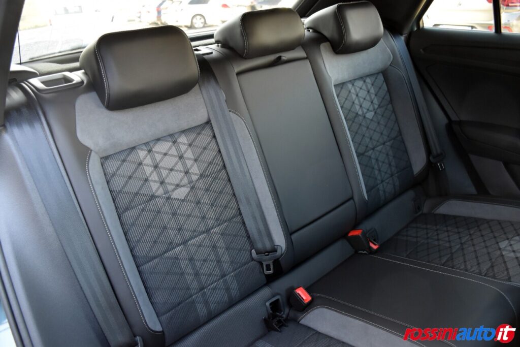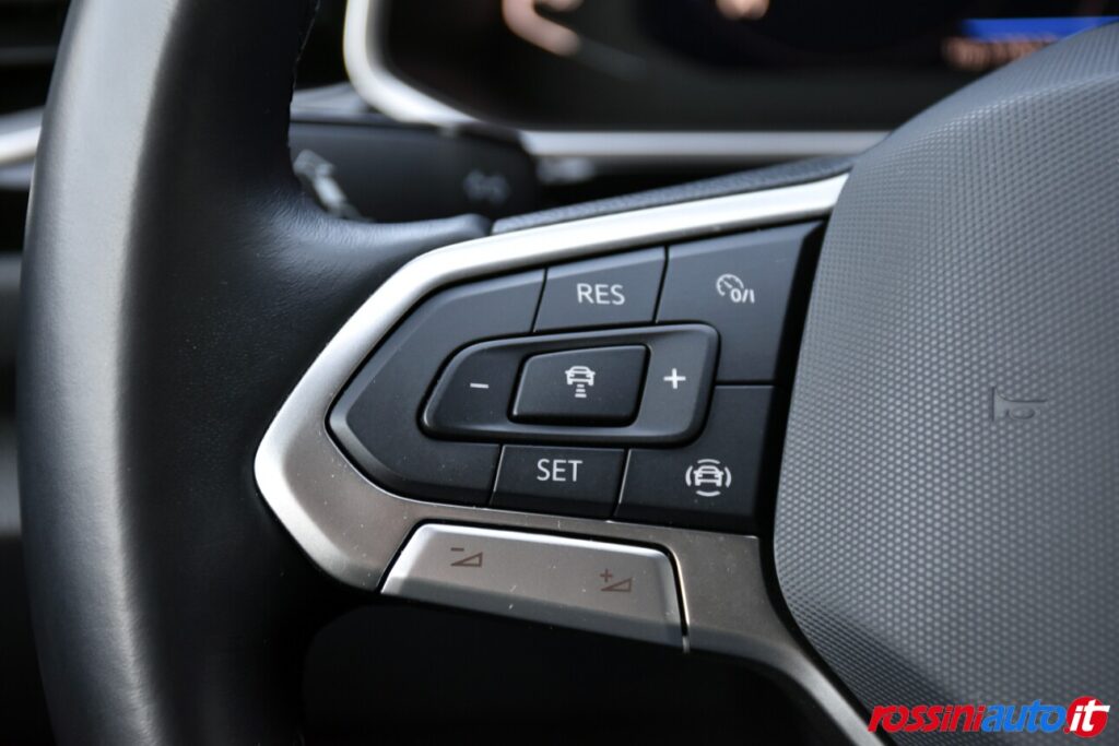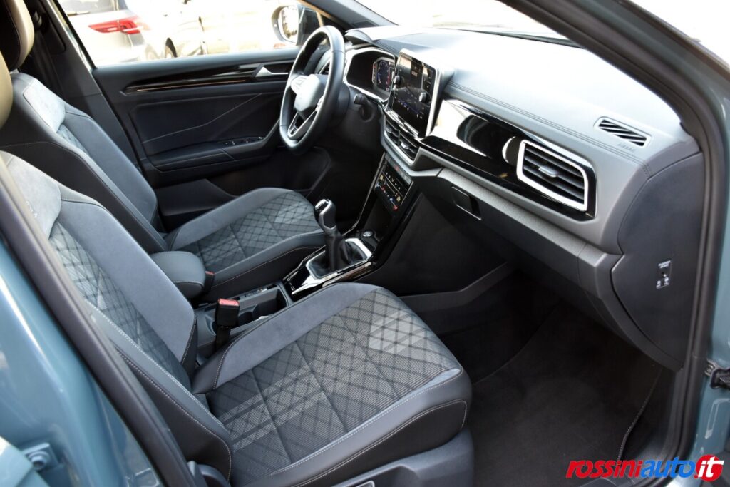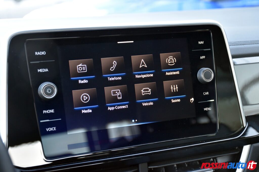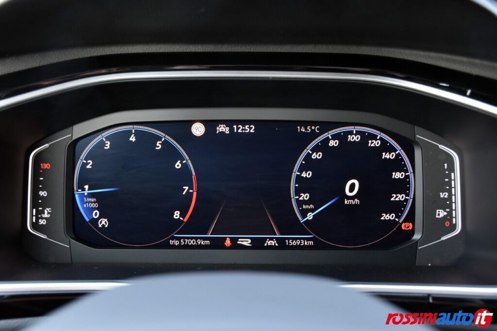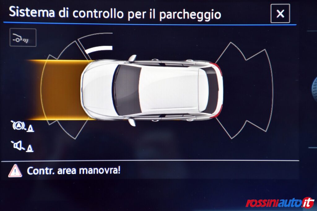 2 luci di lettura anteriori, 2 luci LED nel vano piedi anteriore, 2 Prese C-USB anteriori, 2 x USB-C nella parte posteriore del bracciolo con la sola funzione di ricarica, 6 altoparlanti, ACC – Adaptive Cruise Control “Stop & go”, Airbag a tendina per passeggeri anteriori e posteriori + per conducente e passeggero (lato passeggero disattivabile), Alzacristalli elettrici anteriori e posteriori, Ambient Light, App-Connect con funzione wireless per CarPlay(Apple), Android Auto (Google), Applicazioni cromate, Applicazioni cromate ai tasti anteriori, Appoggiatesta anteriori regolabili, Assistente di mantenimento corsia Lane Assist, Attrezzi di bordo, Bluetooth, Bocchette di aerazione posteriori, Bracciolo centrale anteriore con vano portaoggetti regolabile in altezza e lunghezza, Cambio manuale a 6 marce, Caratterizzazioni specifiche R-Line, Cassetto sotto il sedile ant. destro, Cerchi in lega “Valencia” 7Jx17″ in Galvano Grey, Chiusura centralizzata con telecomando, Climatizzatore manuale, Controllo pressione pneumatici, Controllo Elettronico Stabilità (ESC) ABS, ASR, EDS, MSR e stabilizz. Rimorchio, Cristalli posteriori oscurati, Digital Cockpit Pro da 10,25″, Dispositivo antiavviamento elettronico, Divano post. non sdoppiabile, schienale divisibile e ribaltabile, appoggiabraccia centrale, Emergency Call, Fari anteriori e posteriori a LED, Fatigue Detection – Rilevatore di stanchezza del conducente, Freno di stazionamento elettronico con funzione Auto-Hold, Front Assist con frenata d’emergenza, Funzione Coming Home e funzione Leaving Home, Hill Start Assist, Illuminazione ambiente a LED bianca, Inserti decorativi “Lava Stone Black”, Lane Assist (Sistema di assistenza al mantenimento di corsia), Light Assist – Regolazione automatica abbaglianti, Listelli sottoporta nei vani porta, Mancorrenti cromati, Parabrezza in vetro atermico, Paraurti R-Line, Park Assist: Sistema di parcheggio automatico, Park Pilot – Sensori di parcheggio anteriori e posteriori, Pedaliera in acciaio spazzolato, Piano di copertura vano bagagli regolabile ed estraibile, Radio “Ready2Discover” con display touchscreen da 8”, Ready for We Connect e We Connect Plus, Ricezione Radio Digitale DAB+, Riconoscimento pedoni, Rivestimento sedili in tessuto, Sedile conducente e passeggero regolabili in altezza, Sedili anteriori comfort, Sensore pioggia, Servosterzo elettromeccanico in funzione della velocità, Sistema di protezione proattivo, Sistema ISOFIX per ancoraggio seggiolini nel divano posteriore, Sistema Start/Stop con sistema di recupero dell’energia in frenata, Specchietti retrovisori esterni riscaldabili, regolabili e ripiegabili elettricamente, Specchietto retrovisore interno schermabile automaticamente, Supporto lombare sedili anteriori e sedile del passeggero anteriore ribaltabile, Tire Mobility Set (kit riparazione pneumatici), Volante sportivo multifunzione in pelle, Volante regolabile in altezza e