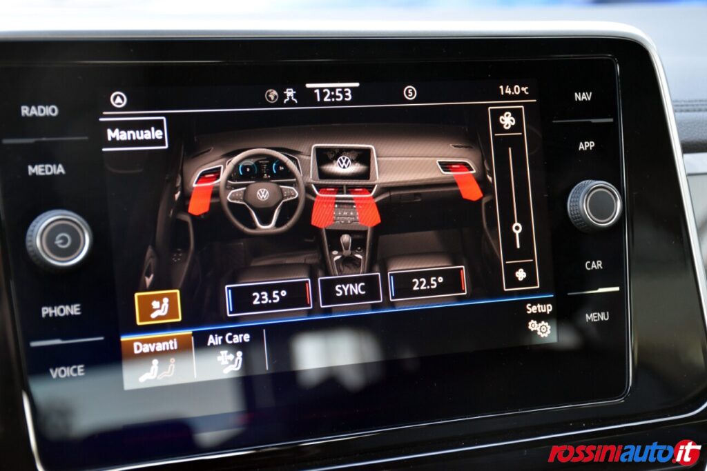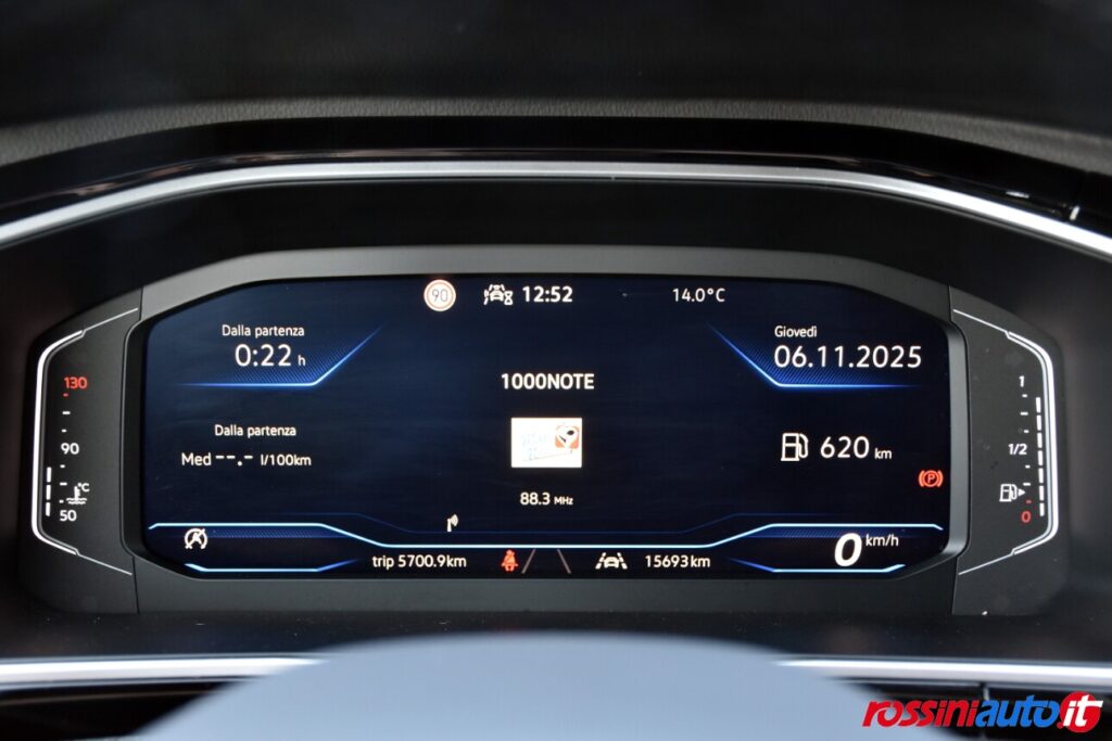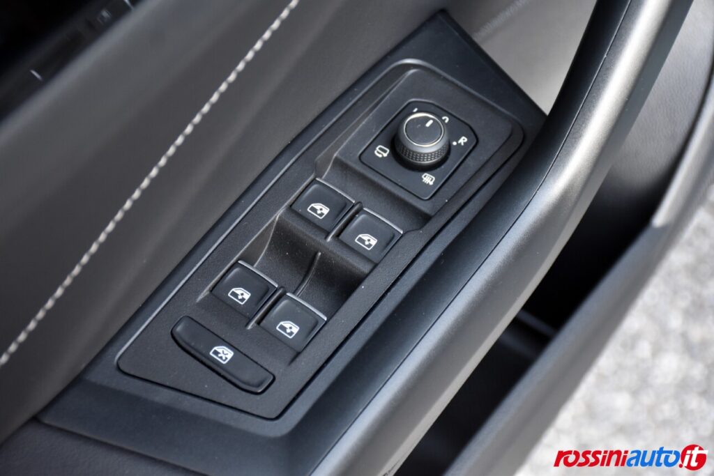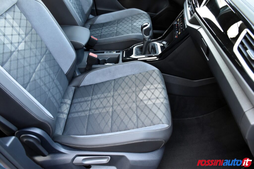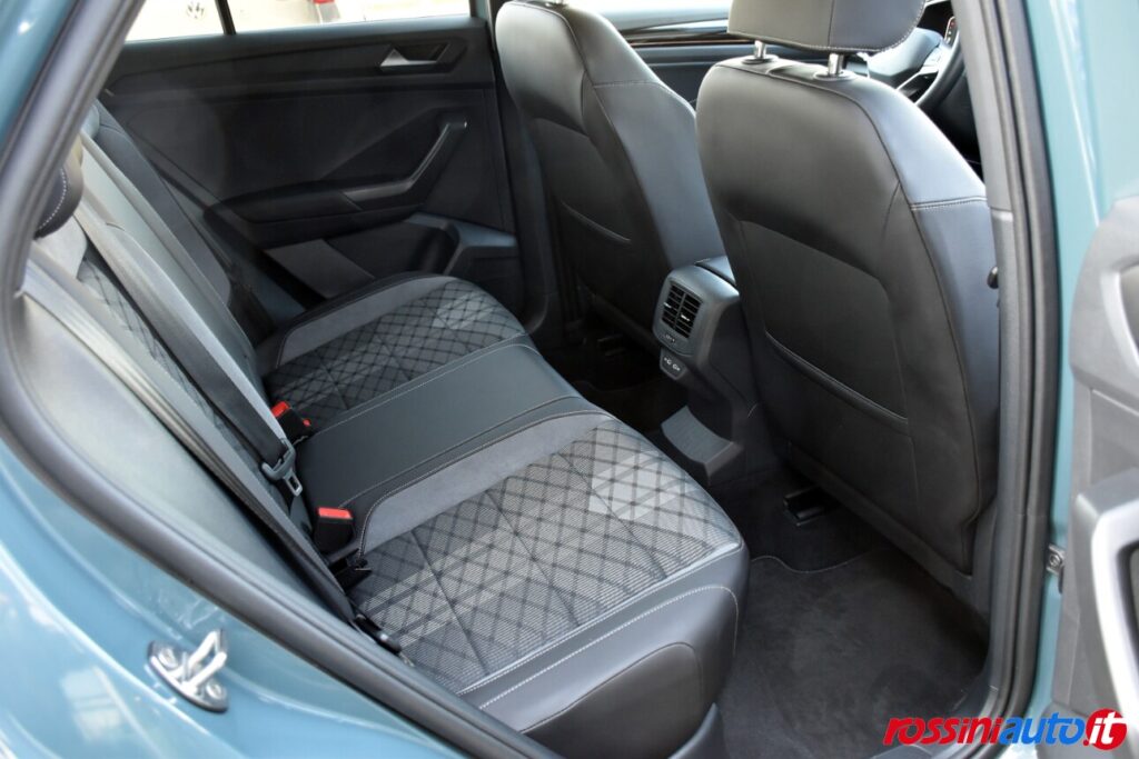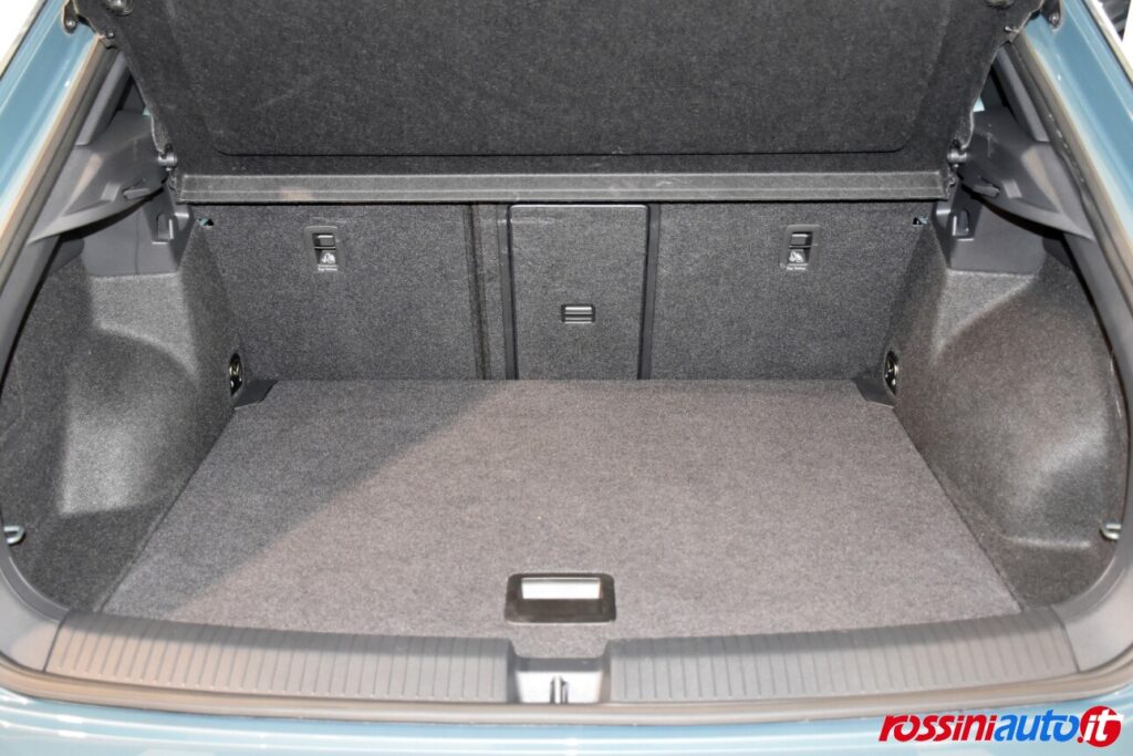 2 luci di lettura anteriori, 2 luci LED nel vano piedi anteriore, 2 Prese C-USB anteriori, 2 x USB-C nella parte posteriore del bracciolo con la sola funzione di ricarica, 6 altoparlanti, ACC – Adaptive Cruise Control “Stop & go”, Airbag a tendina per passeggeri anteriori e posteriori + per conducente e passeggero (lato passeggero disattivabile), Alzacristalli elettrici anteriori e posteriori, Ambient Light, App-Connect con funzione wireless per CarPlay(Apple), Android Auto (Google), Applicazioni cromate, Applicazioni cromate ai tasti anteriori, Appoggiatesta anteriori regolabili, Assistente di mantenimento corsia Lane Assist, Attrezzi di bordo, Bluetooth, Bocchette di aerazione posteriori, Bracciolo centrale anteriore con vano portaoggetti regolabile in altezza e lunghezza, Cambio manuale a 6 marce, Caratterizzazioni specifiche R-Line, Cassetto sotto il sedile ant. destro, Cerchi in lega “Valencia” 7Jx17″ in Galvano Grey, Chiusura centralizzata con telecomando, Climatizzatore manuale, Controllo pressione pneumatici, Controllo Elettronico Stabilità (ESC) ABS, ASR, EDS, MSR e stabilizz. Rimorchio, Cristalli posteriori oscurati, Digital Cockpit Pro da 10,25″, Dispositivo antiavviamento elettronico, Divano post. non sdoppiabile, schienale divisibile e ribaltabile, appoggiabraccia centrale, Emergency Call, Fari anteriori e posteriori a LED, Fatigue Detection – Rilevatore di stanchezza del conducente, Freno di stazionamento elettronico con funzione Auto-Hold, Front Assist con frenata d’emergenza, Funzione Coming Home e funzione Leaving Home, Hill Start Assist, Illuminazione ambiente a LED bianca, Inserti decorativi “Lava Stone Black”, Lane Assist (Sistema di assistenza al mantenimento di corsia), Light Assist – Regolazione automatica abbaglianti, Listelli sottoporta nei vani porta, Mancorrenti cromati, Parabrezza in vetro atermico, Paraurti R-Line, Park Assist: Sistema di parcheggio automatico, Park Pilot – Sensori di parcheggio anteriori e posteriori, Pedaliera in acciaio spazzolato, Piano di copertura vano bagagli regolabile ed estraibile, Radio “Ready2Discover” con display touchscreen da 8”, Ready for We Connect e We Connect Plus, Ricezione Radio Digitale DAB+, Riconoscimento pedoni, Rivestimento sedili in tessuto, Sedile conducente e passeggero regolabili in altezza, Sedili anteriori comfort, Sensore pioggia, Servosterzo elettromeccanico in funzione della velocità, Sistema di protezione proattivo, Sistema ISOFIX per ancoraggio seggiolini nel divano posteriore, Sistema Start/Stop con sistema di recupero dell’energia in frenata, Specchietti retrovisori esterni riscaldabili, regolabili e ripiegabili elettricamente, Specchietto retrovisore interno schermabile automaticamente, Supporto lombare sedili anteriori e sedile del passeggero anteriore ribaltabile, Tire Mobility Set (kit riparazione pneumatici), Volante sportivo multifunzione in pelle, Volante regolabile in altezza e