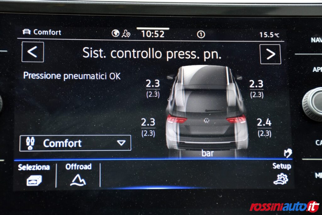 Adaptive Cruise Control Alzacristalli elettrici Bluetooth Bracciolo Chiusura centralizzata Chiusura centralizzata senza chiavi Chiusura centralizzata telecomandata Climazzatore automatico 3 zone Cruise Control Freno di stazionamento elettronico Luci d'ambiente Portellone posteriore elettrico Sedile posteriore sdoppiato Sensore di luminosità Sensore di pioggia Sensori di parcheggio anteriori Sensori di parcheggio posteriori Servosterzo Sistema di parcheggio automatico Sospensioni pneumatiche Specchietto laterale elettrico Specchietto retrovisore con funzione anabagliante Start/Stop automatico Supporto lombare Telecamera per retromarcia Volante in pelle Volante multifunzione